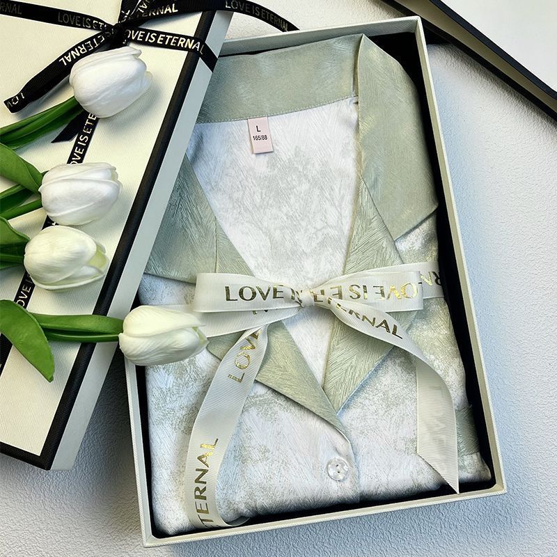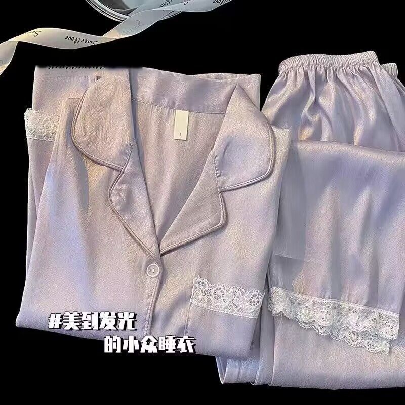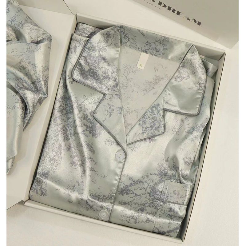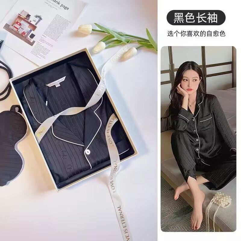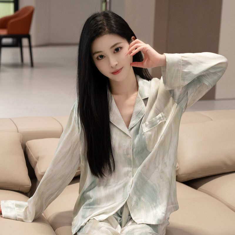 리틀 레드 북 새로운 Ins 타이거 패턴 하이 엔드 아이스 실크 파자마 여성의 봄과 가을 긴 소매 바지 인터넷 인기 홈 의류 세트