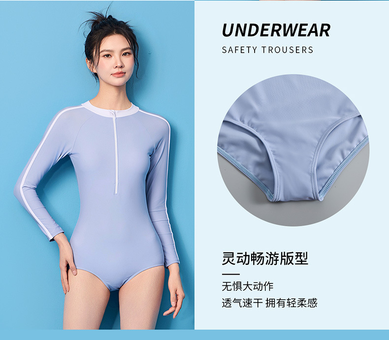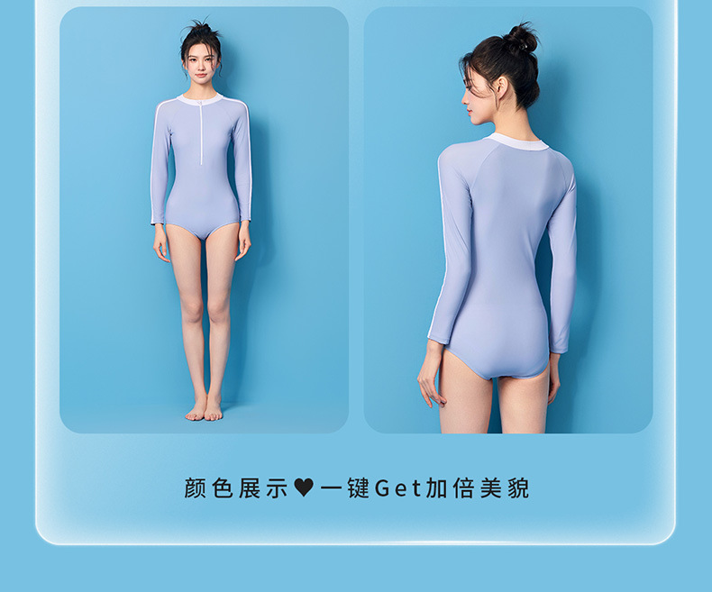 여성 수영복 2025 새로운 수영복 섹시 슬림 커버 배 긴 소매 보수적 인 원피스 비치 휴가 수영복 도매