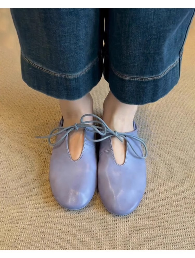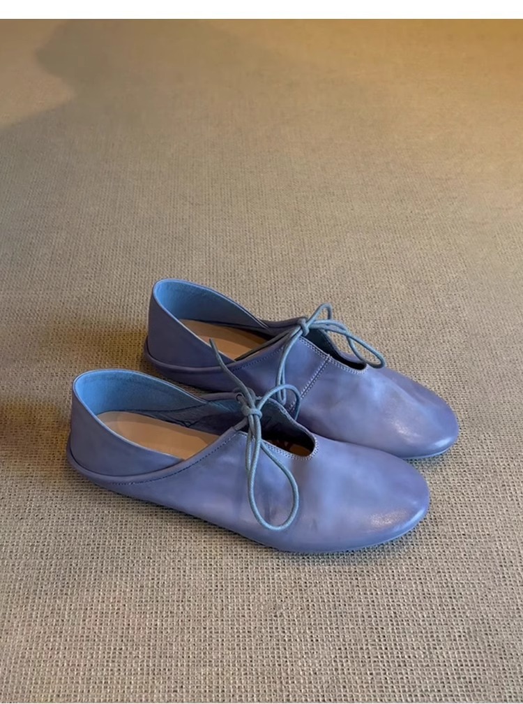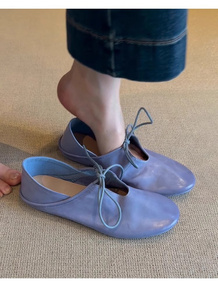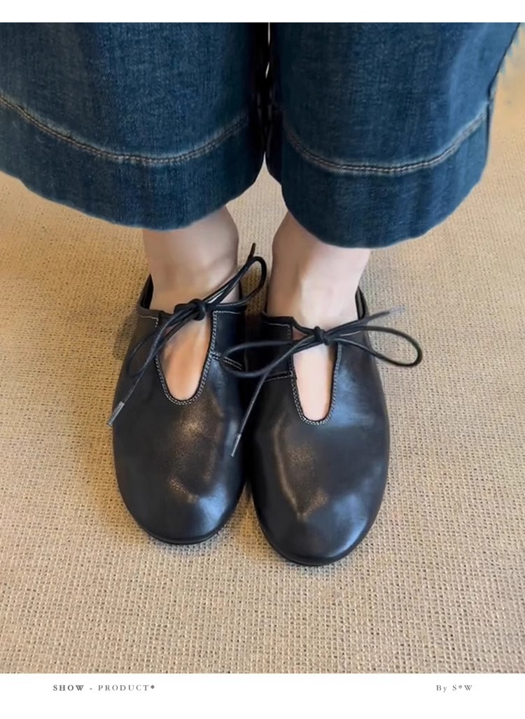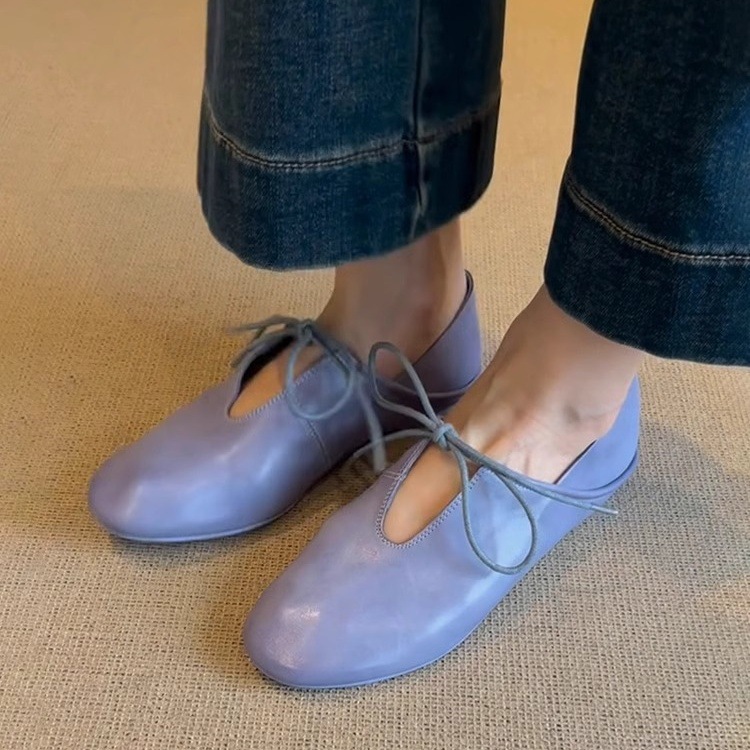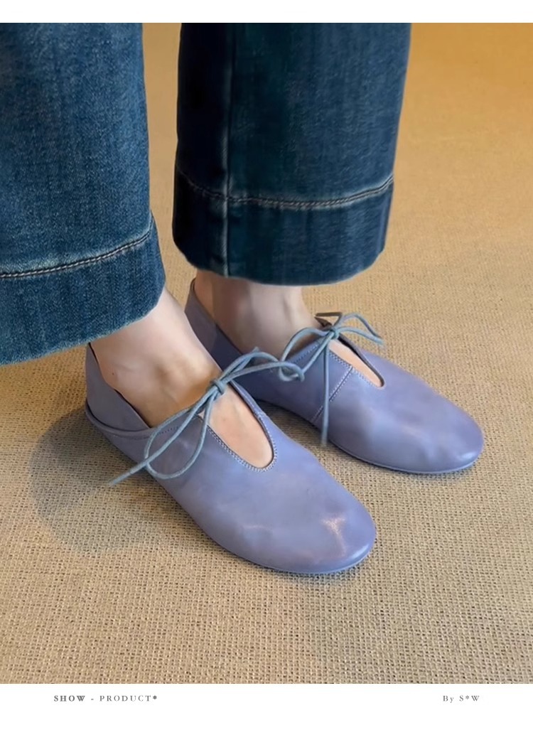 부드러운 가죽 버전 ~ 복고풍 부드러운 가죽 플랫 힐 투신 작은 가죽 신발 여성용 이른 봄 새 레이스 업 속이 빈 둥근 발가락 단일 신발