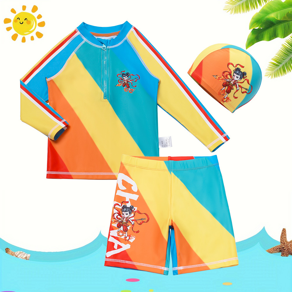 온천 해변 수영복 어린이 학생 수영복을 세트 새로운 어린이 소년 긴 소매 수영 트렁크 분할