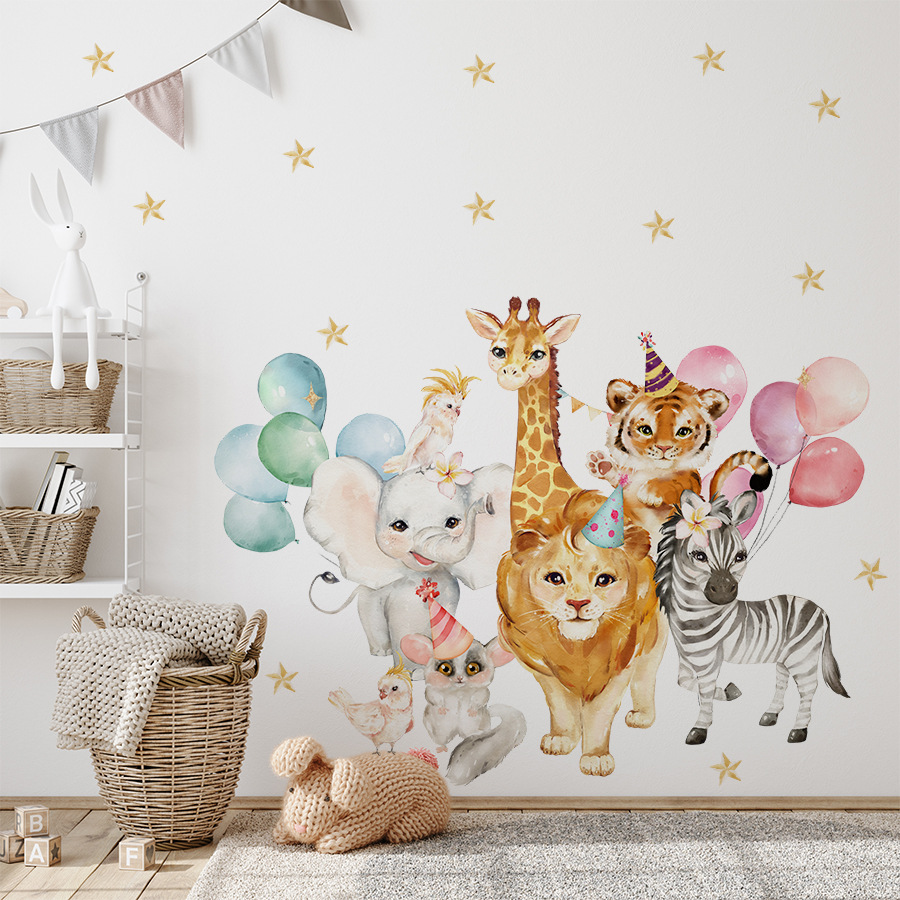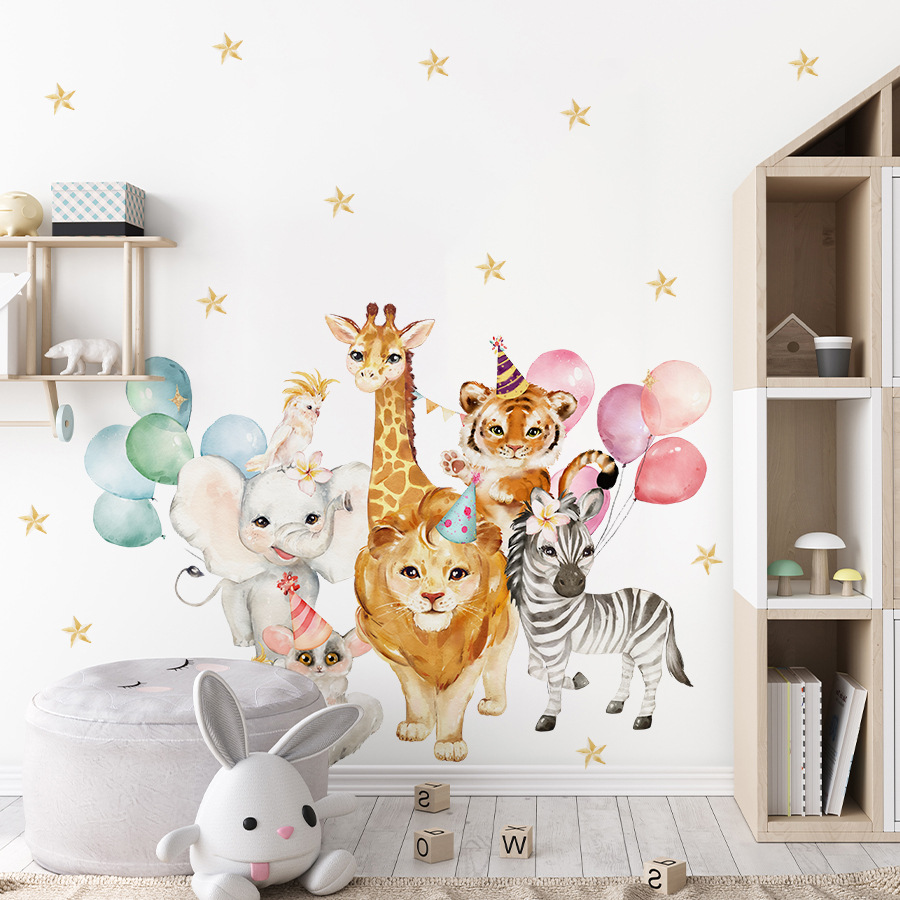 BR3686E 정글 파티 귀여운 작은 동물 자기 접착 애니메이션 벽 스티커 생일 파티 어린이 방 장식 스티커스토어 가기