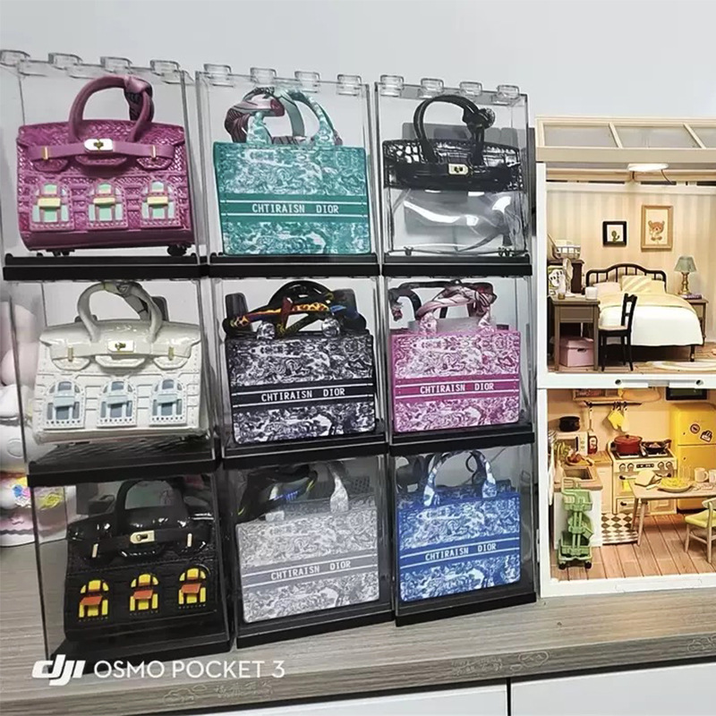 작은 집 창 가방 플래티넘 가방 인형 건물 블록 상자 자동차 모델 디스플레이 랙 투명 방진 캐비닛 가방 저장 상자