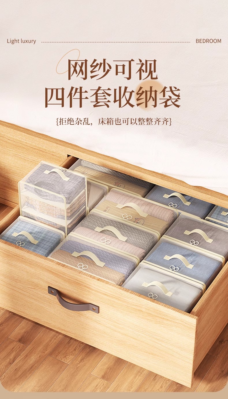 4 조각 보관 가방 가정용 옷장 계절 퀼트 의류 이불 마무리 가방 동반 아티팩트 서랍 상자 가방