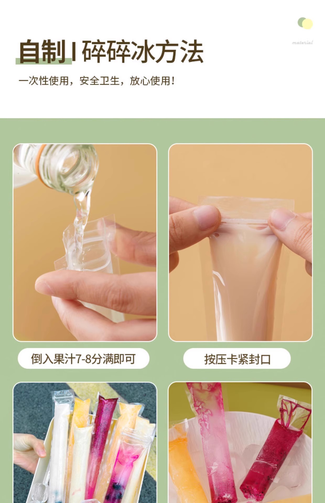 DIY 일회용 아이스 캔디 가방, 노점용, 식용 아이스크림, 냉동 아이스크림 가방, 노점용 얼음 식품 등급