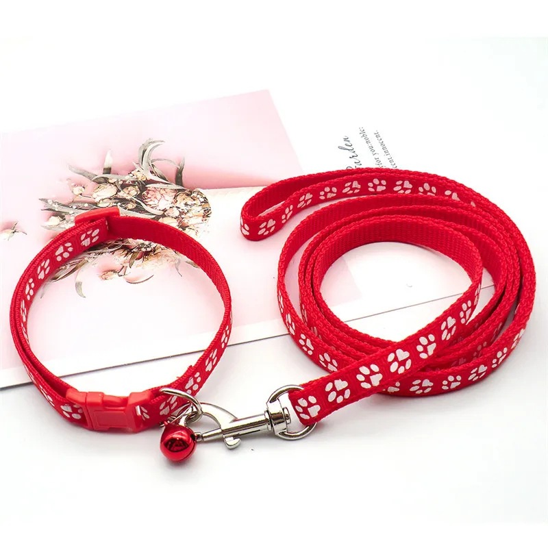 귀여운 강아지 발 인쇄 애완 동물 견인 밧줄 강아지 목걸이 세트