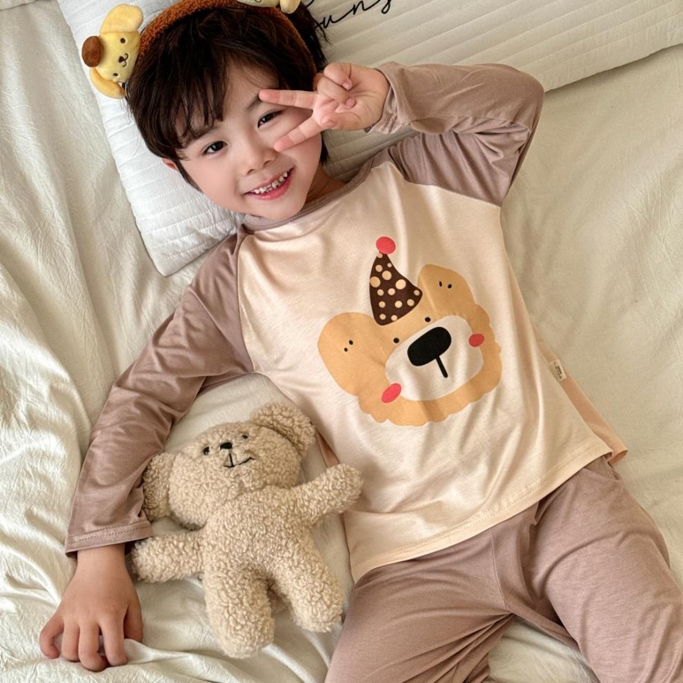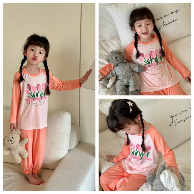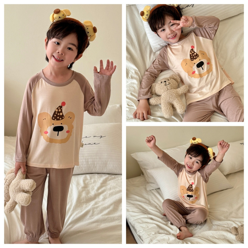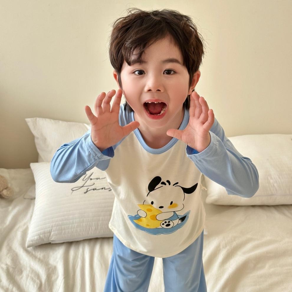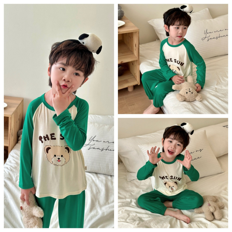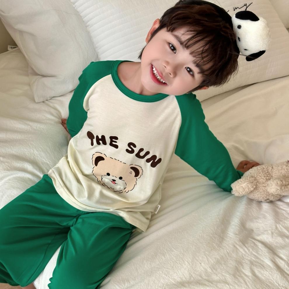 남아 및 여아용 아동 모달 홈웨어 세트, 여름용 얇은 잠옷, 중대형 아동용 한국식 긴팔 에어컨 의류스토어 가기