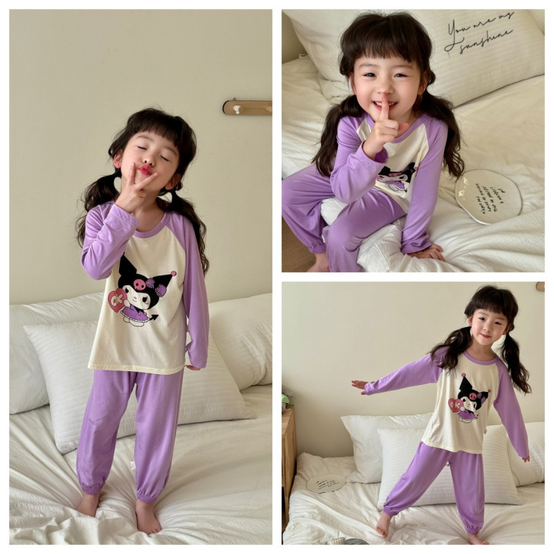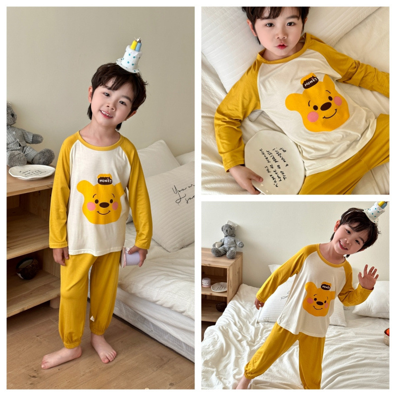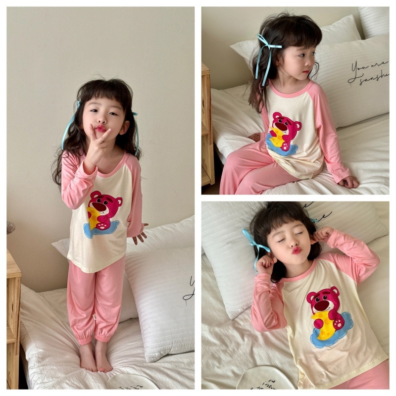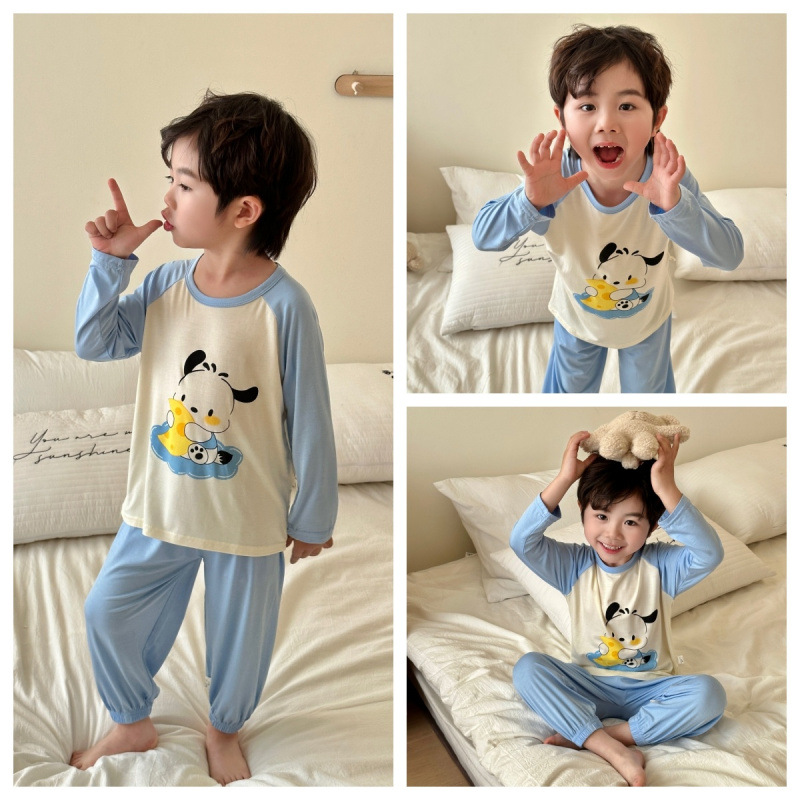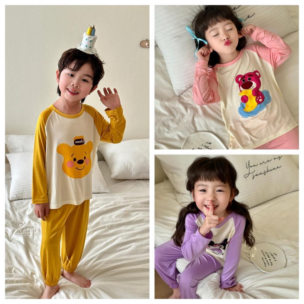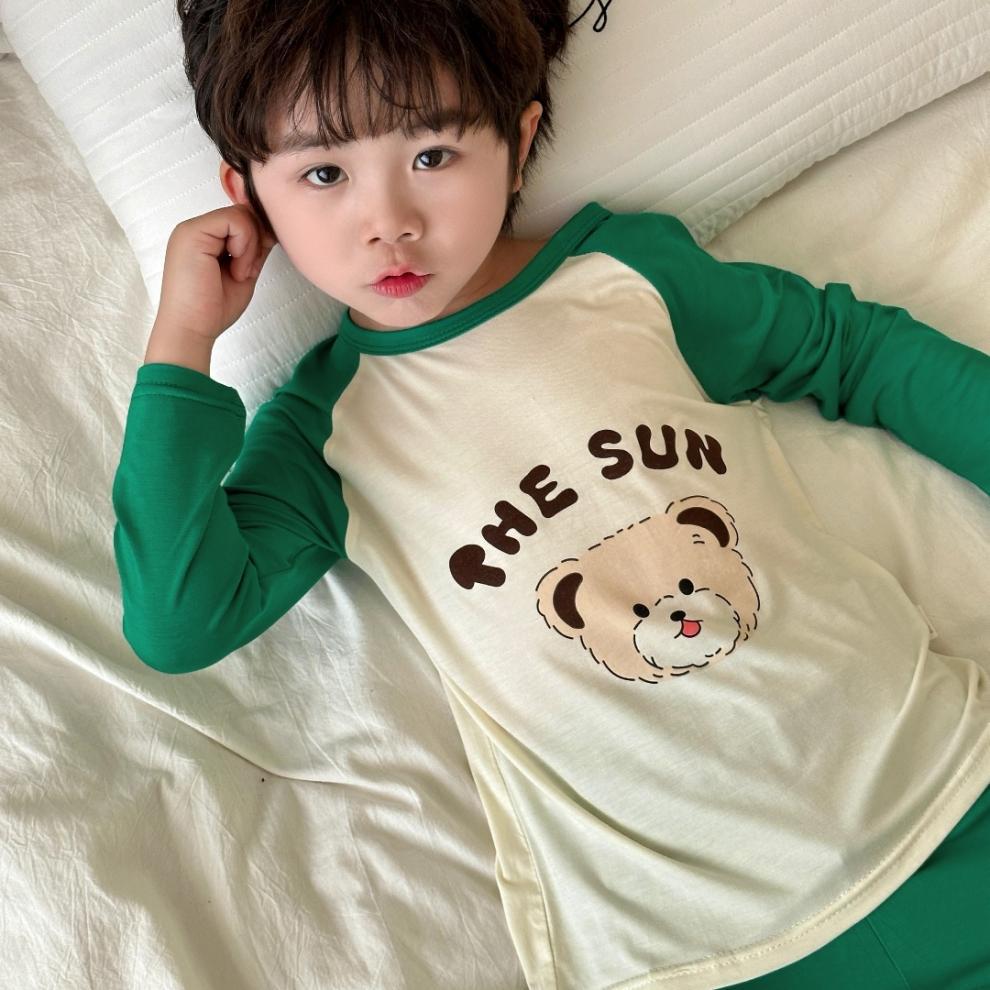 남아 및 여아용 아동 모달 홈웨어 세트, 여름용 얇은 잠옷, 중대형 아동용 한국식 긴팔 에어컨 의류스토어 가기