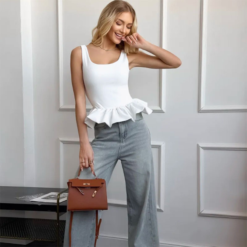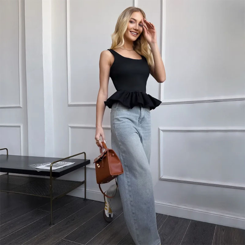 2025 여름 신상 달콤한 러플 숏 스커트 민소매 캐미솔 유럽풍 캐주얼 스퀘어넥 스커트스토어 가기
