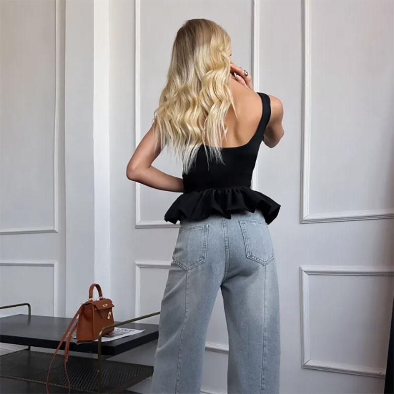 2025 여름 신상 달콤한 러플 숏 스커트 민소매 캐미솔 유럽풍 캐주얼 스퀘어넥 스커트