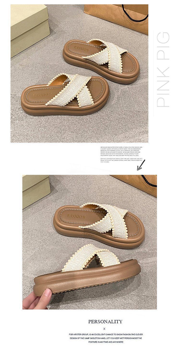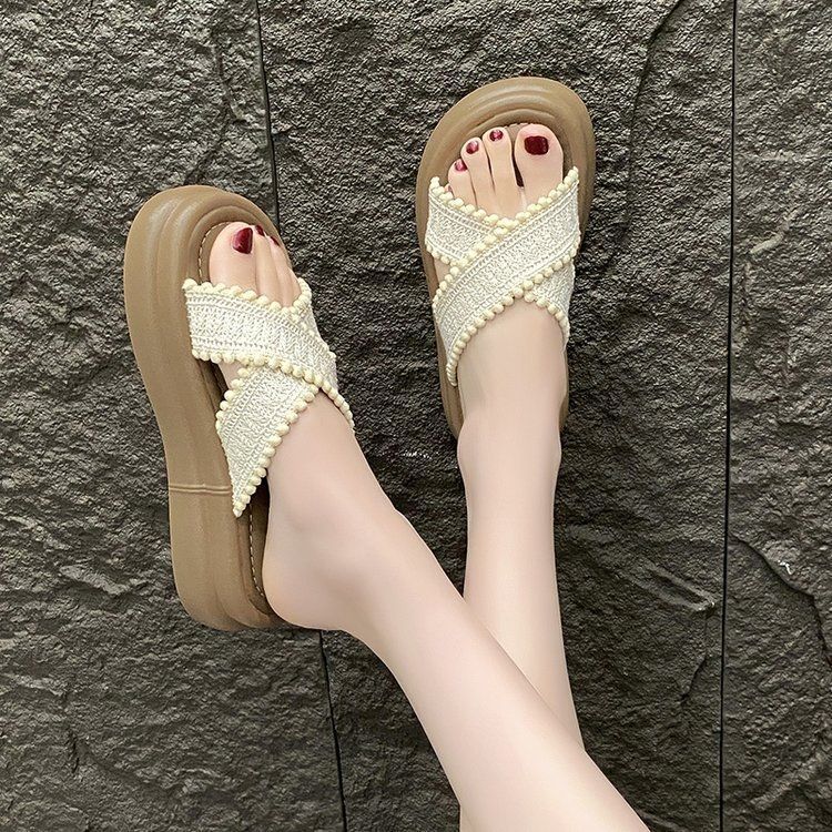 슬리퍼 새로운 트렌디 인 스타일 미끄럼 방지 크로스 2025 여름 두꺼운 단독 높이 증가 여성 신발 비치 아우터 쿨스토어 가기