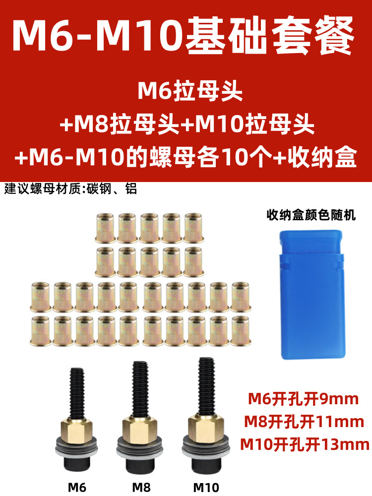 • M6-M10(기본 세트)에는 리벳 너트 30개가 포함되어 있습니다.