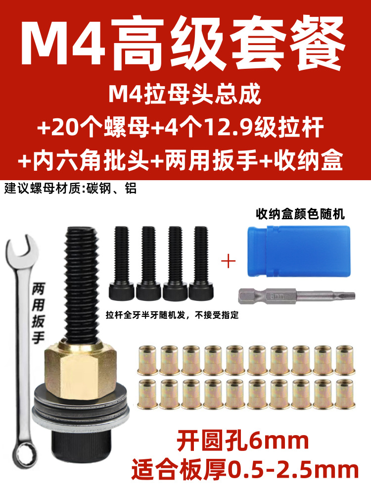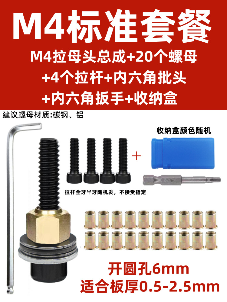 • M4 암 풀 헤드에는 전기 드릴 비트 + 타이 로드 2개 + 리벳 너트 20개가 함께 제공됩니다.