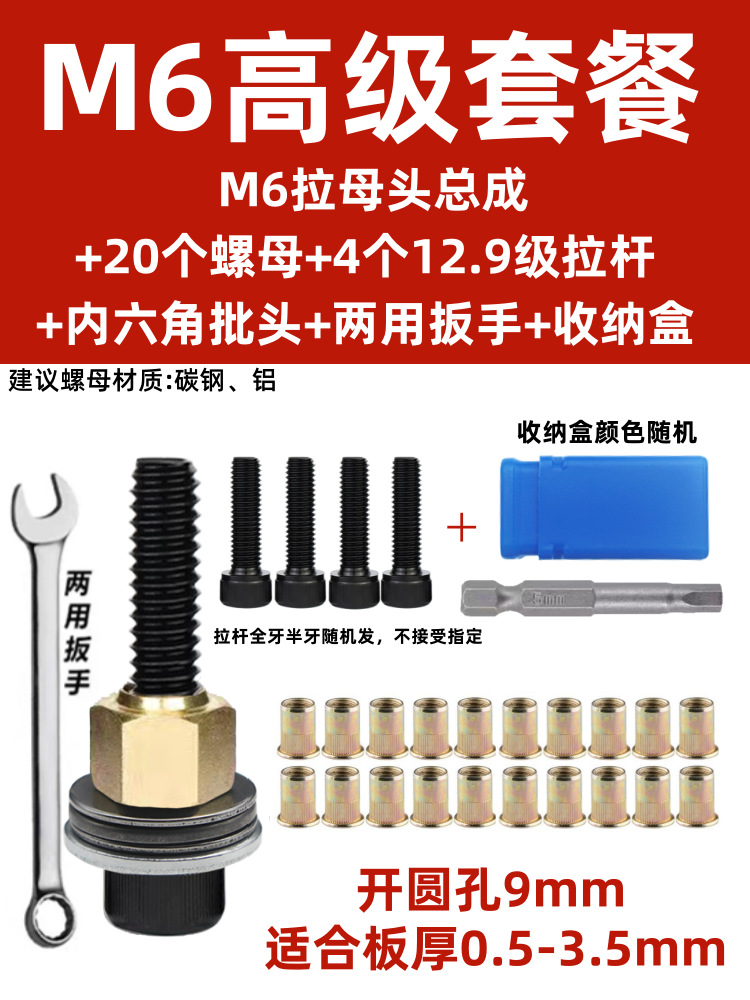• M6 암 풀 헤드에는 전기 드릴 비트 + 타이 로드 2개 + 리벳 너트 20개가 함께 제공됩니다.