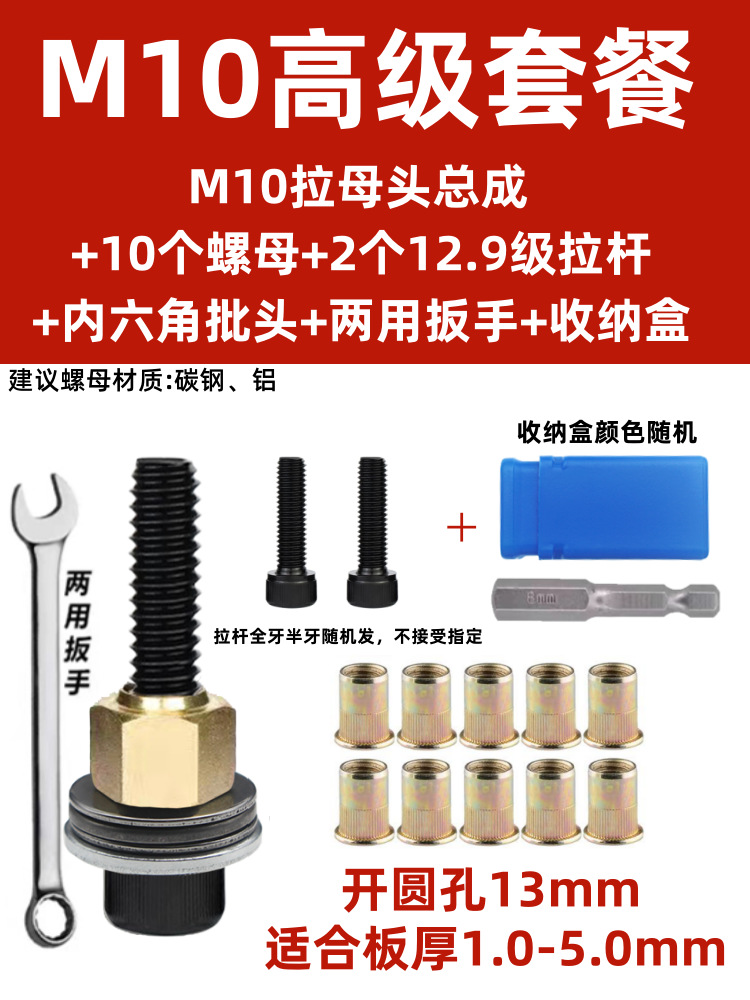 • M10 암 풀 헤드에는 전기 드릴 비트 + 타이 로드 1개 + 리벳 너트 10개가 함께 제공됩니다.