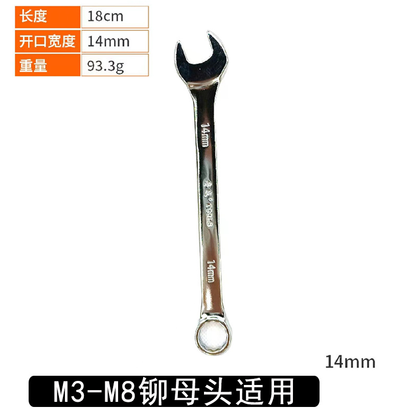 • 14mm 이중 목적 렌치 1개(M3-M8 리벳 헤드에 적합)
