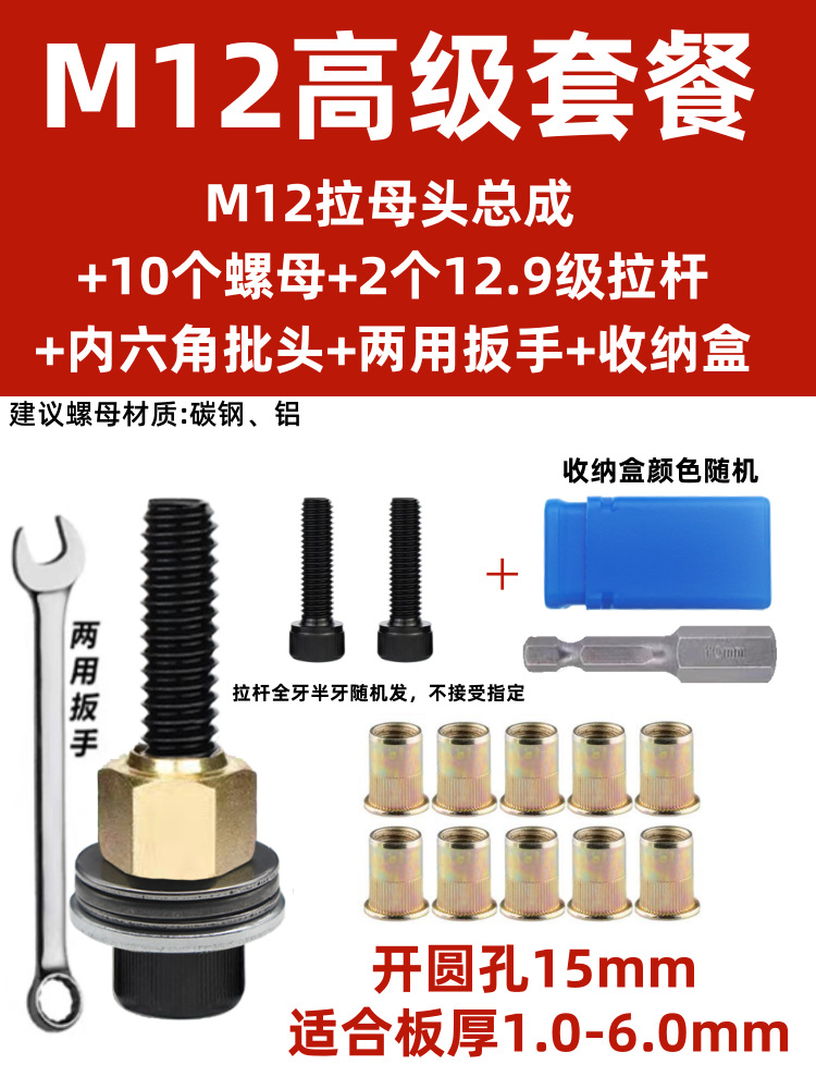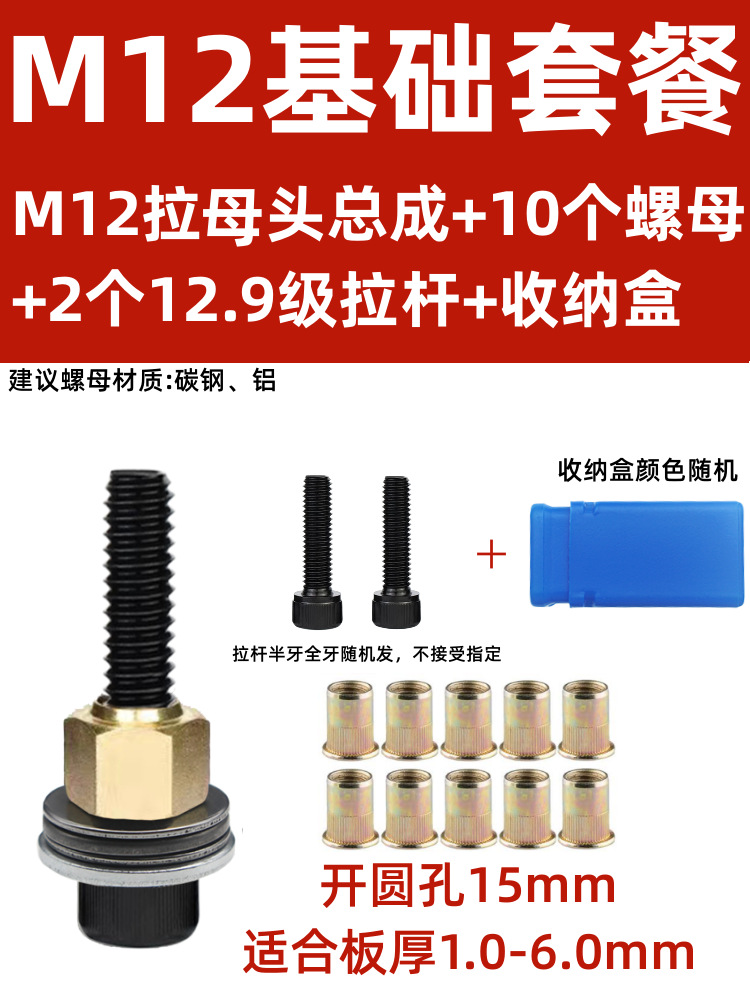 • M12 암 풀 헤드에는 전기 드릴 비트 + 타이 로드 1개 + 리벳 너트 10개가 함께 제공됩니다.