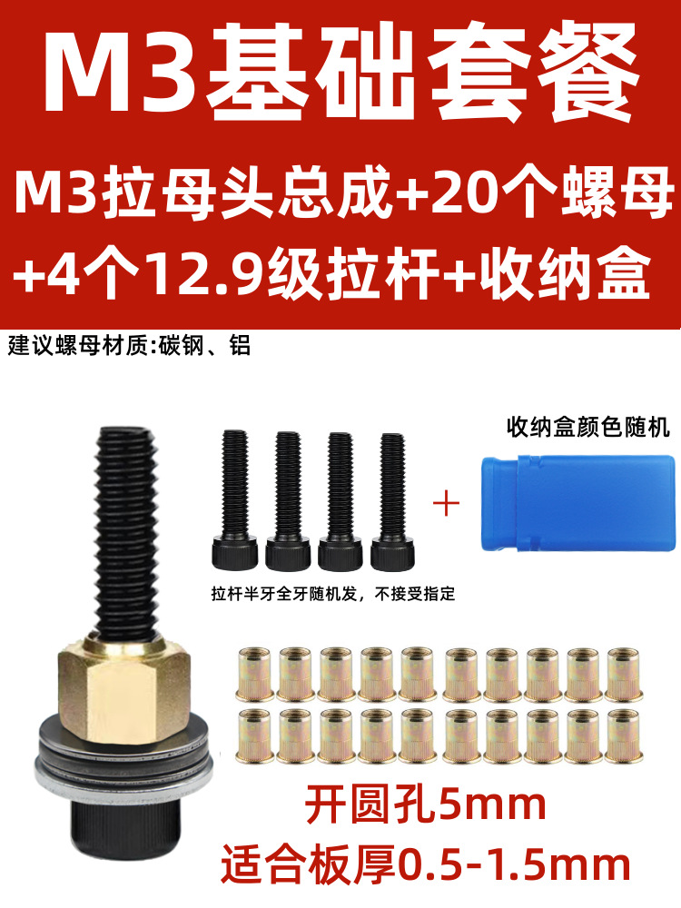 • M3 암 풀 헤드에는 전기 드릴 비트 + 타이 로드 2개 + 리벳 너트 20개가 함께 제공됩니다.