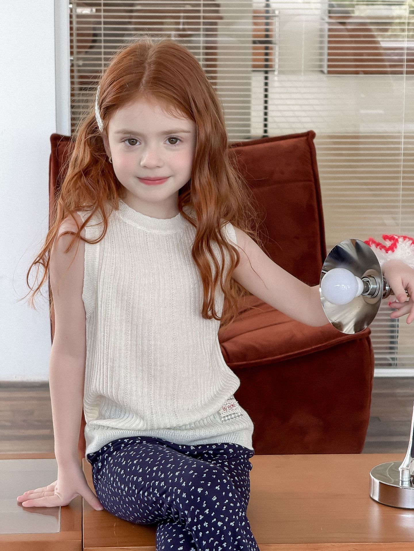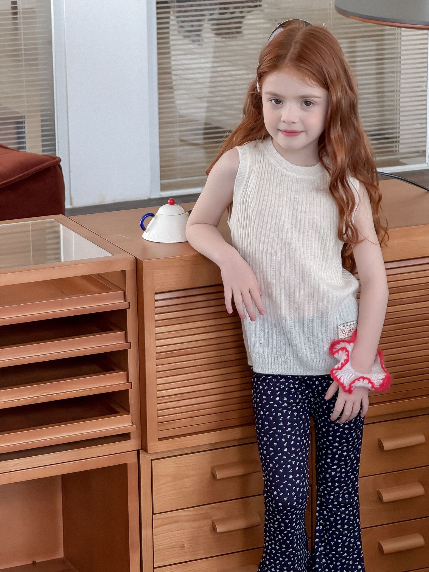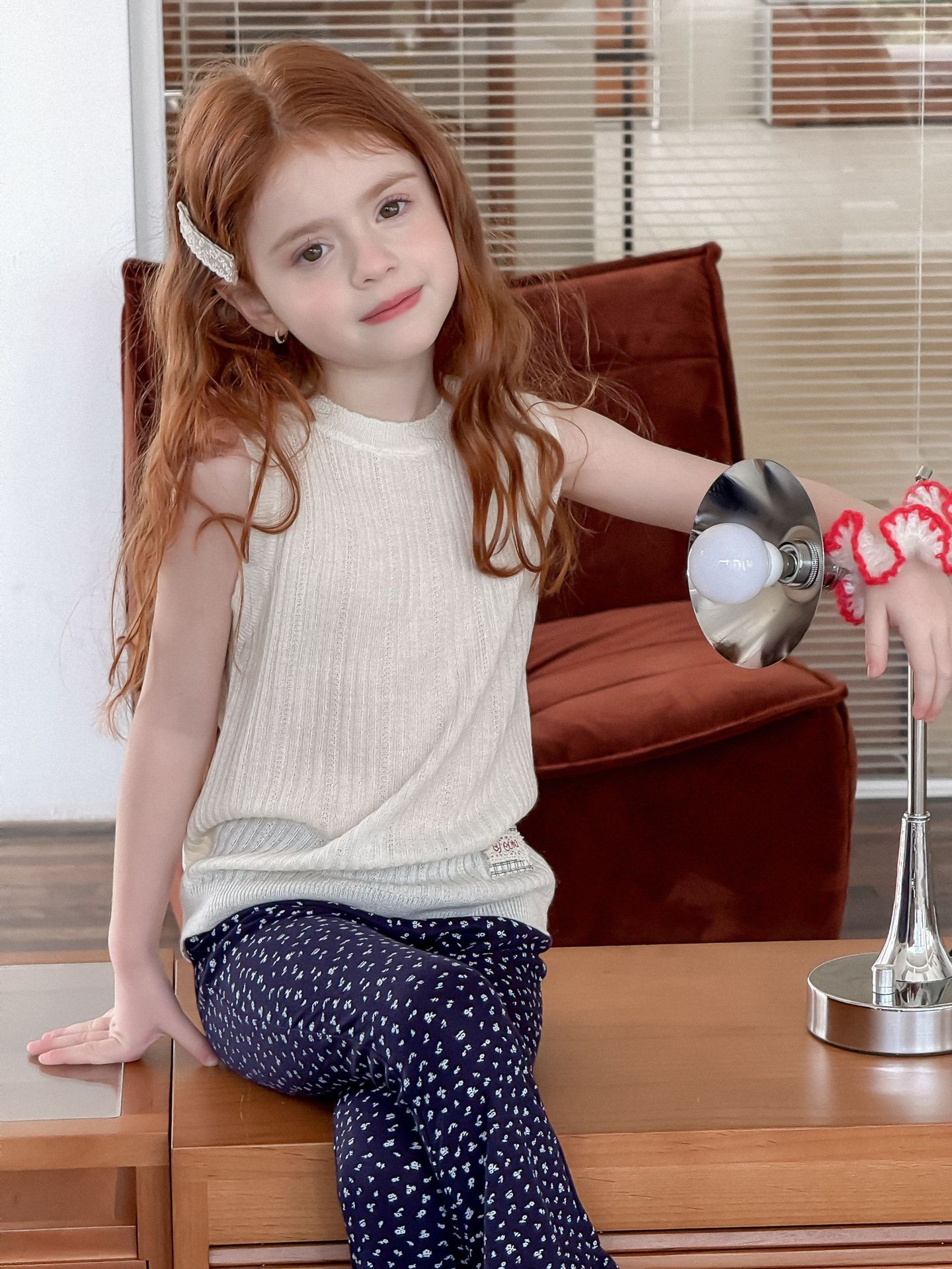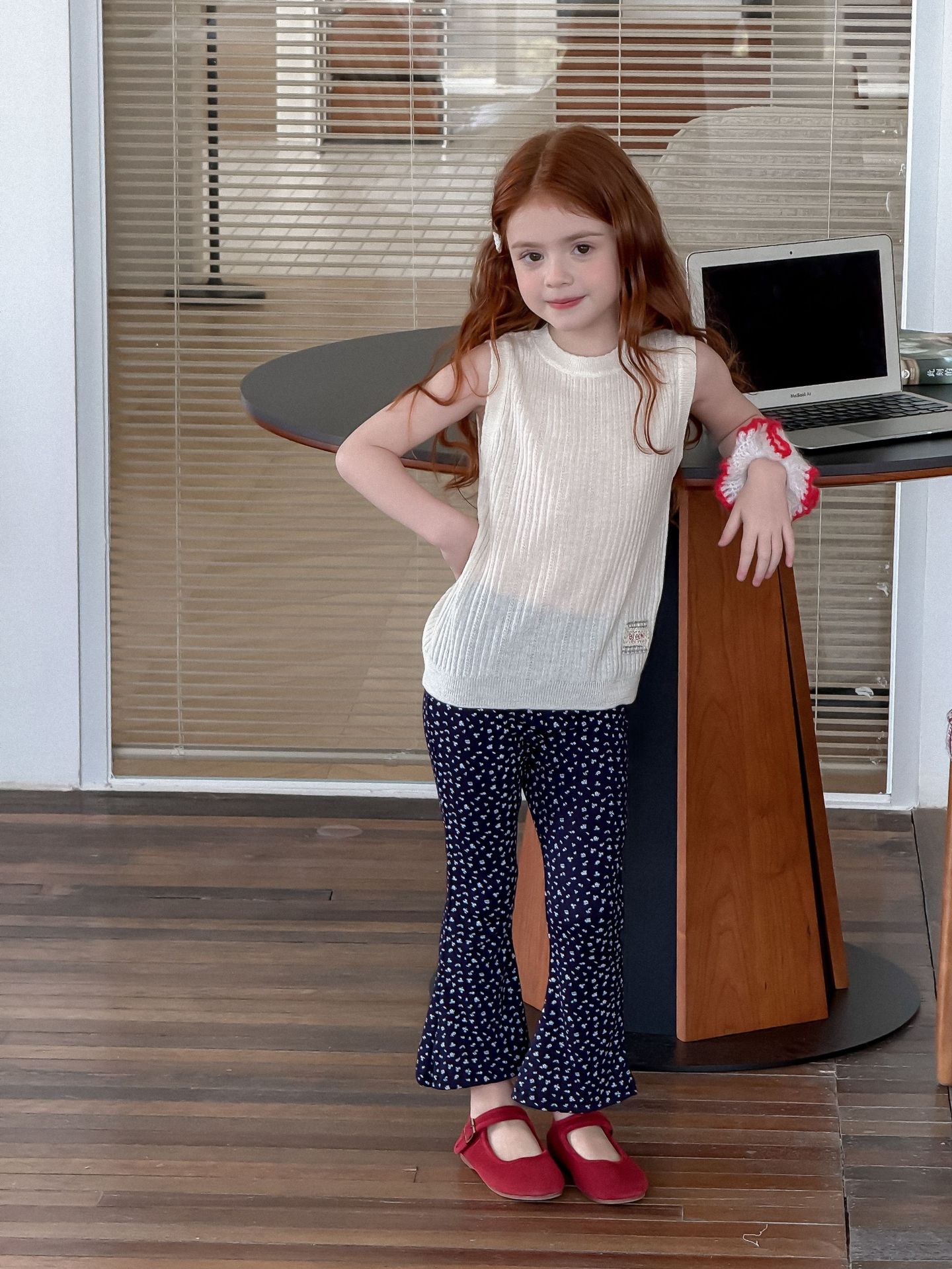 소녀 한국식 플래 팬츠 2025 여름 새 스타일 얇은 부드러운 찹쌀 높은 탄성 니트 바지 어린이 서양식 꽃 트렌디 팬츠
