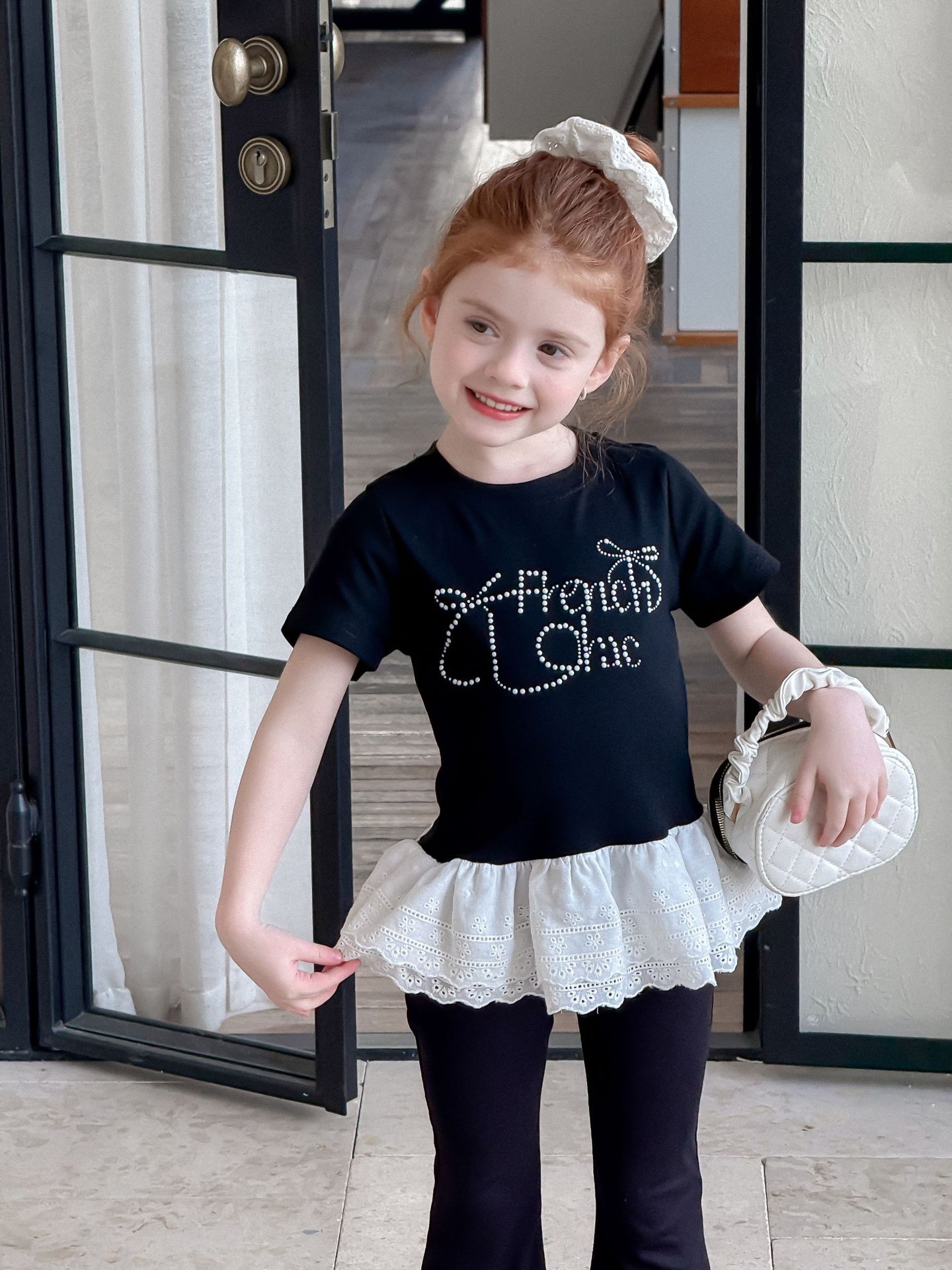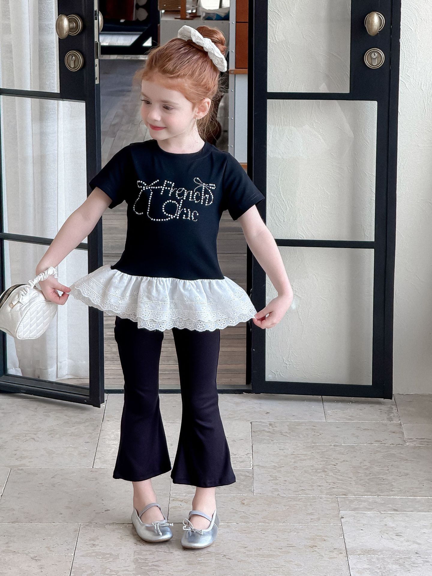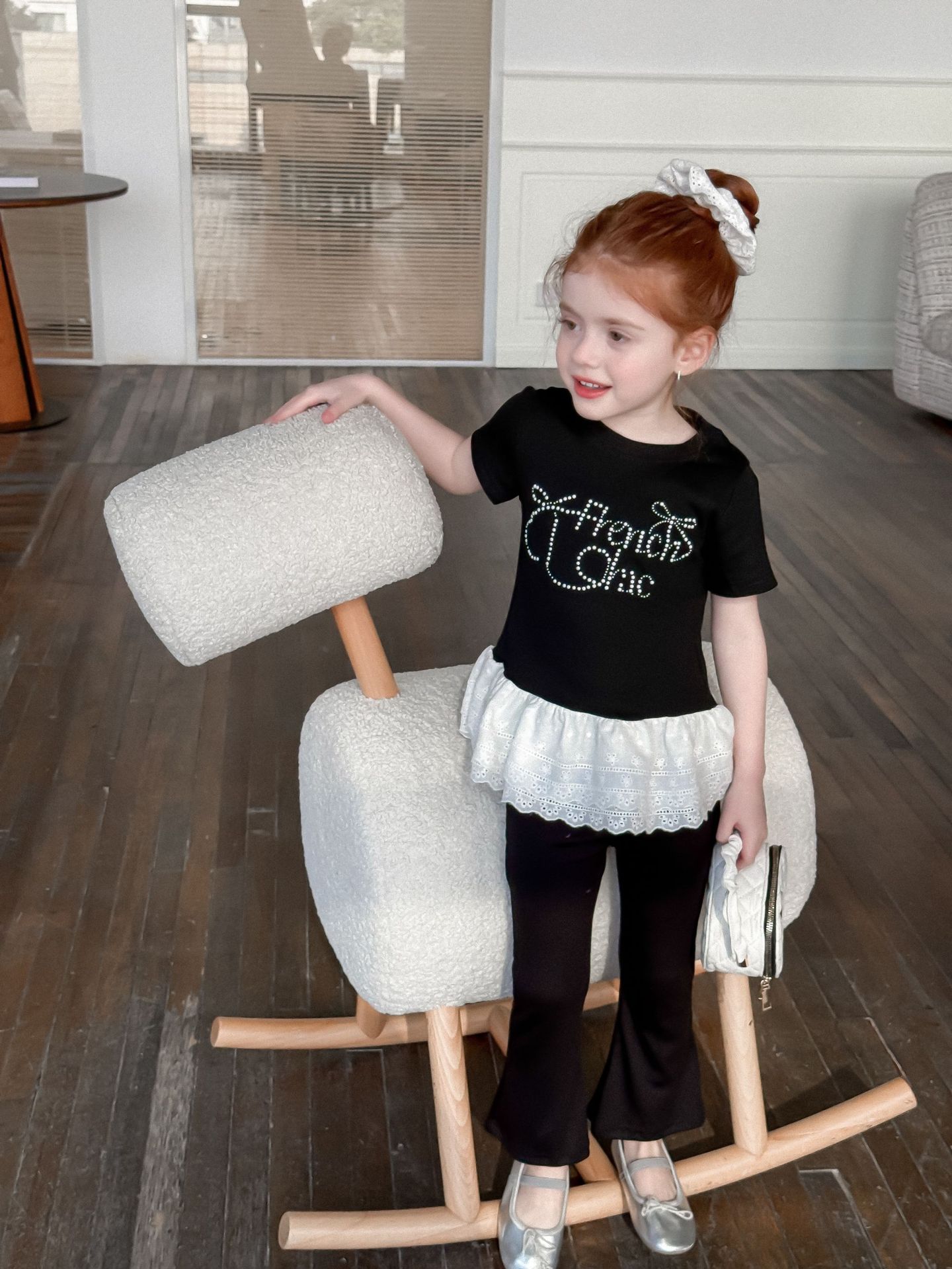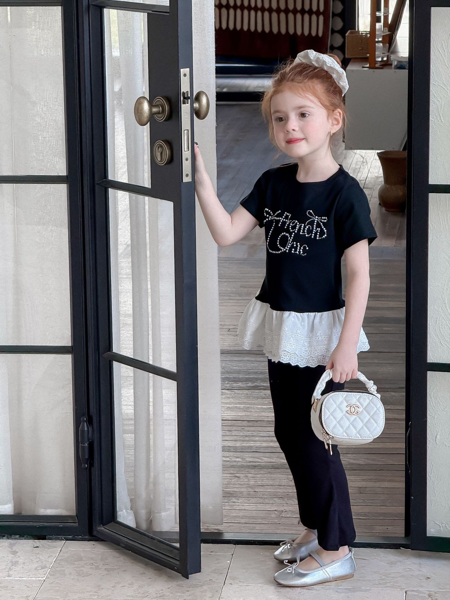 소녀 한국식 플래 팬츠 2025 여름 새 스타일 얇은 부드러운 찹쌀 높은 탄성 니트 바지 어린이 서양식 꽃 트렌디 팬츠