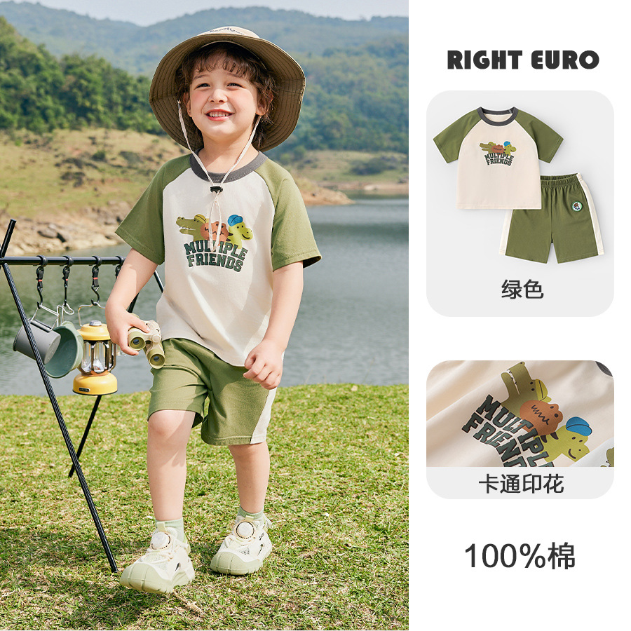 남학생 코튼 스포츠 세트 여름 새로운 반팔 반바지 어린이 의류 여름 의류 아기 어린이 투피스 의류 유행스토어 가기