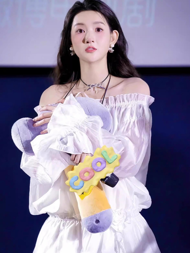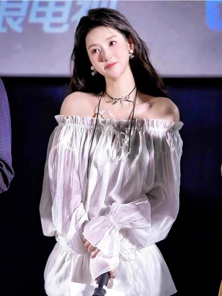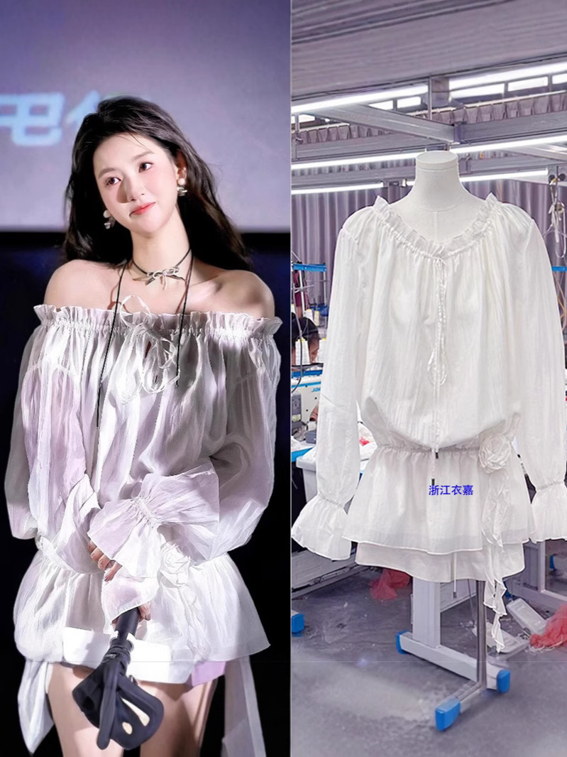 [재고] 사랑할 가치가있는 왕위웬 저우수이의 같은 스타일 프랑스 한 어깨 셔츠 원피스 어린이 기질 느슨한