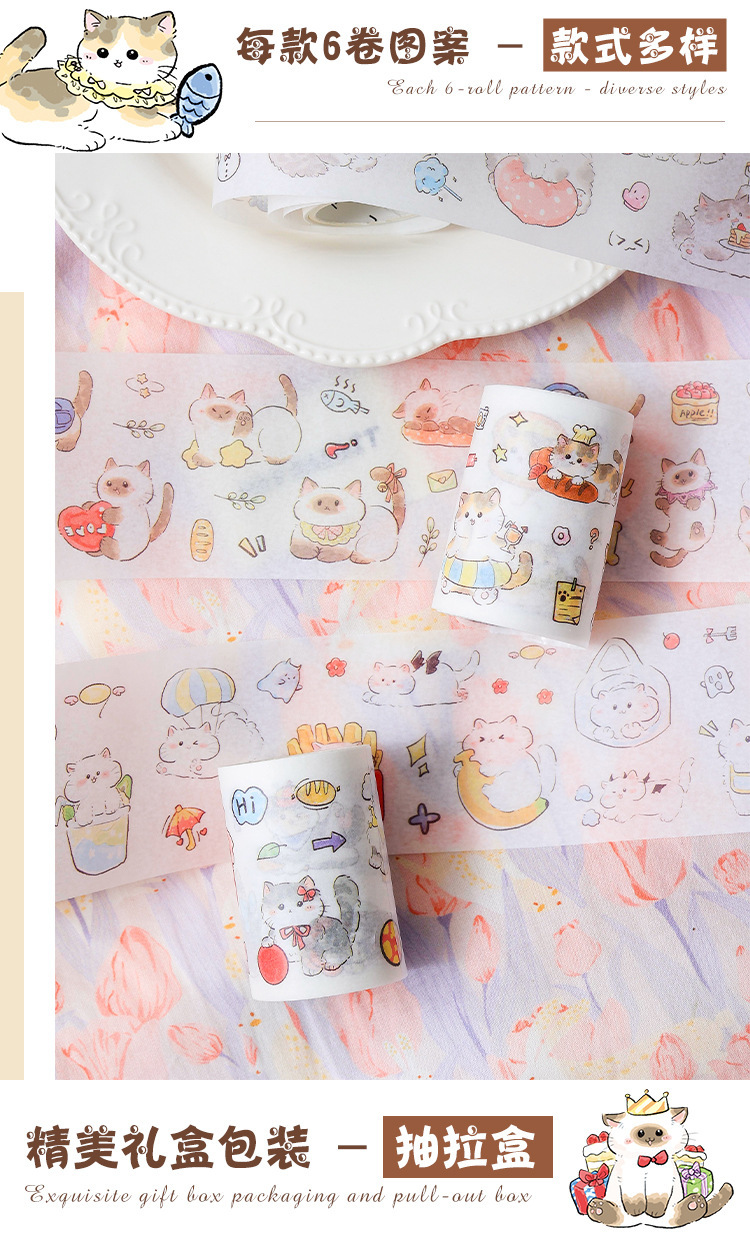 고양이 마크 Washi 테이프 세트 DIY 핸드북 일기 스티커 국경 간 복고풍 만화 동물 고양이 스티커스토어 가기