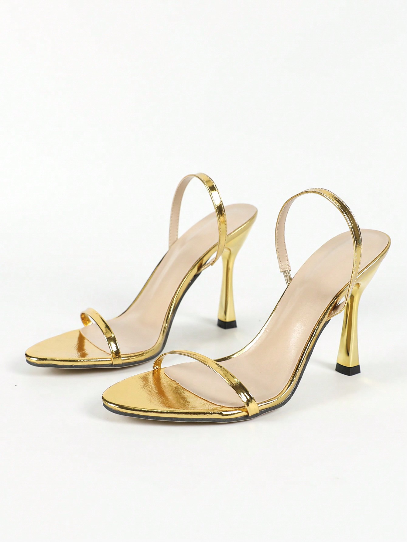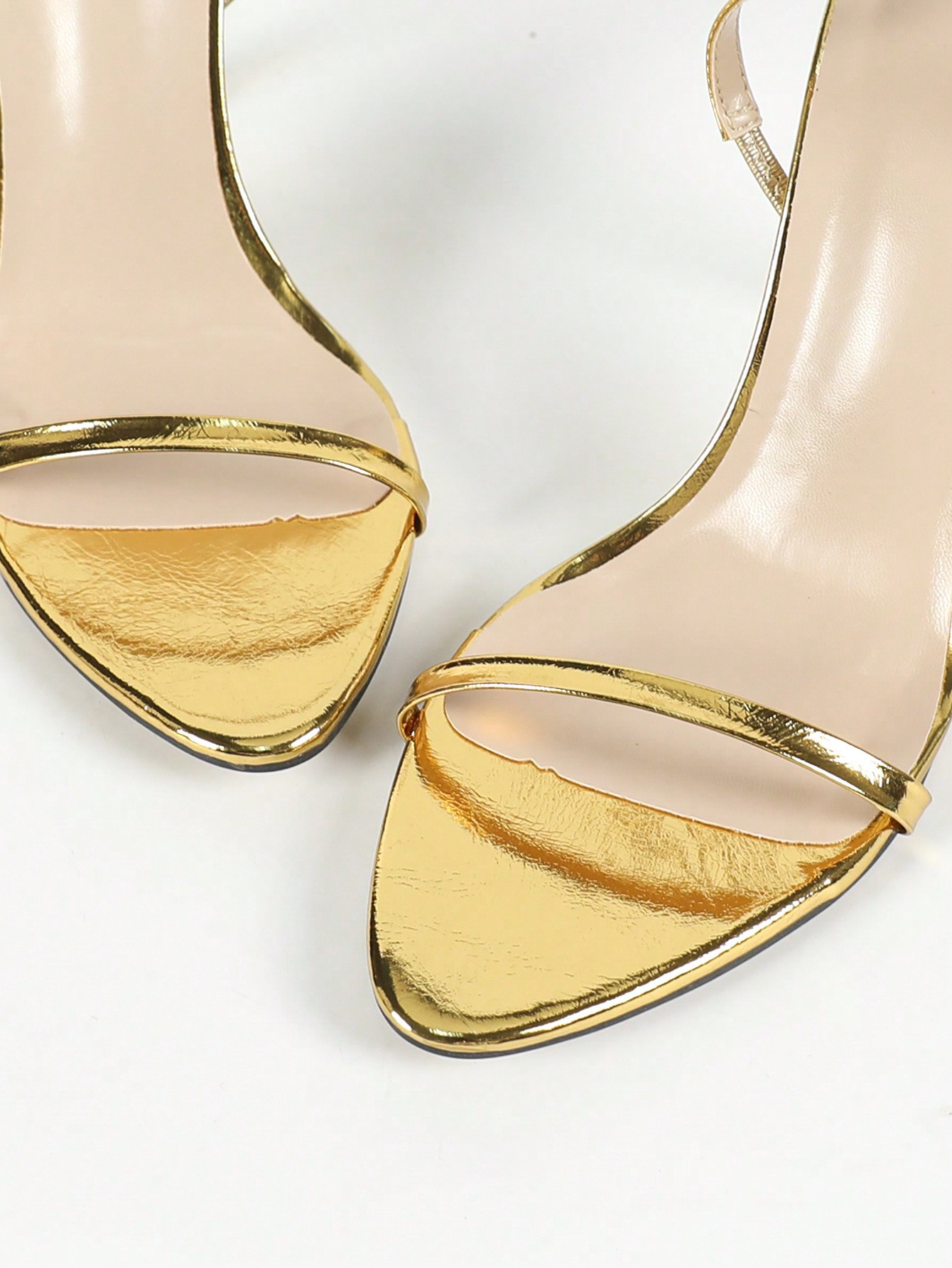 공장 직접 판매 국경 간 대외 무역 여성 하이힐 핫 골드 PU 가죽 더블 레이어 UV 전기 도금 스틸레토 샌들