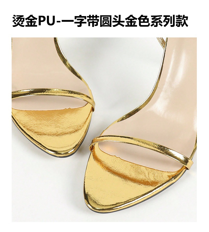 공장 직접 판매 국경 간 대외 무역 여성 하이힐 핫 골드 PU 가죽 더블 레이어 UV 전기 도금 스틸레토 샌들스토어 가기