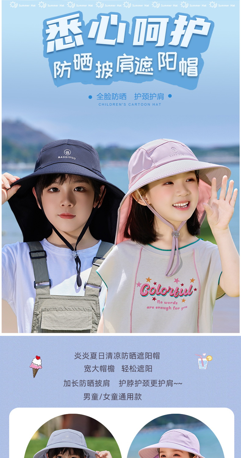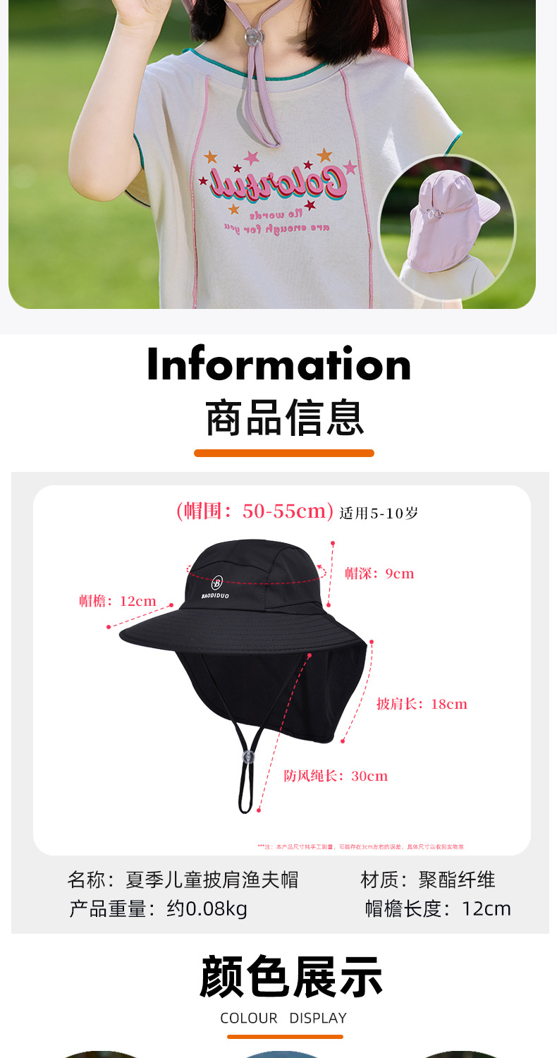 어린이 숄, 자외선 차단 모자, 여름 소년 소녀 야외 봄 나들이 목 보호, 통기성 모기 방지 어부 모자