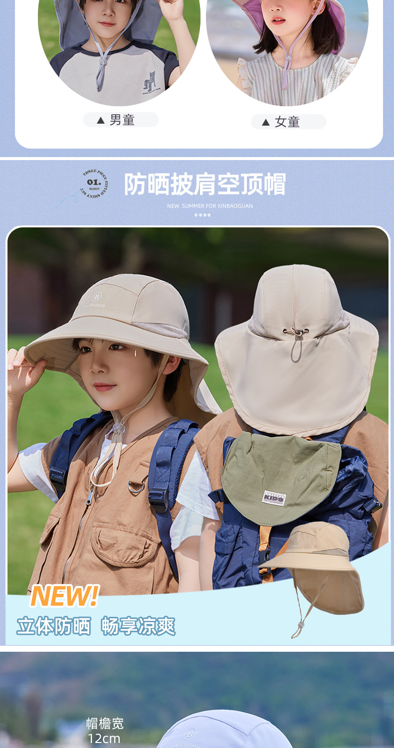 어린이 숄, 자외선 차단 모자, 여름 소년 소녀 야외 봄 나들이 목 보호, 통기성 모기 방지 어부 모자스토어 가기