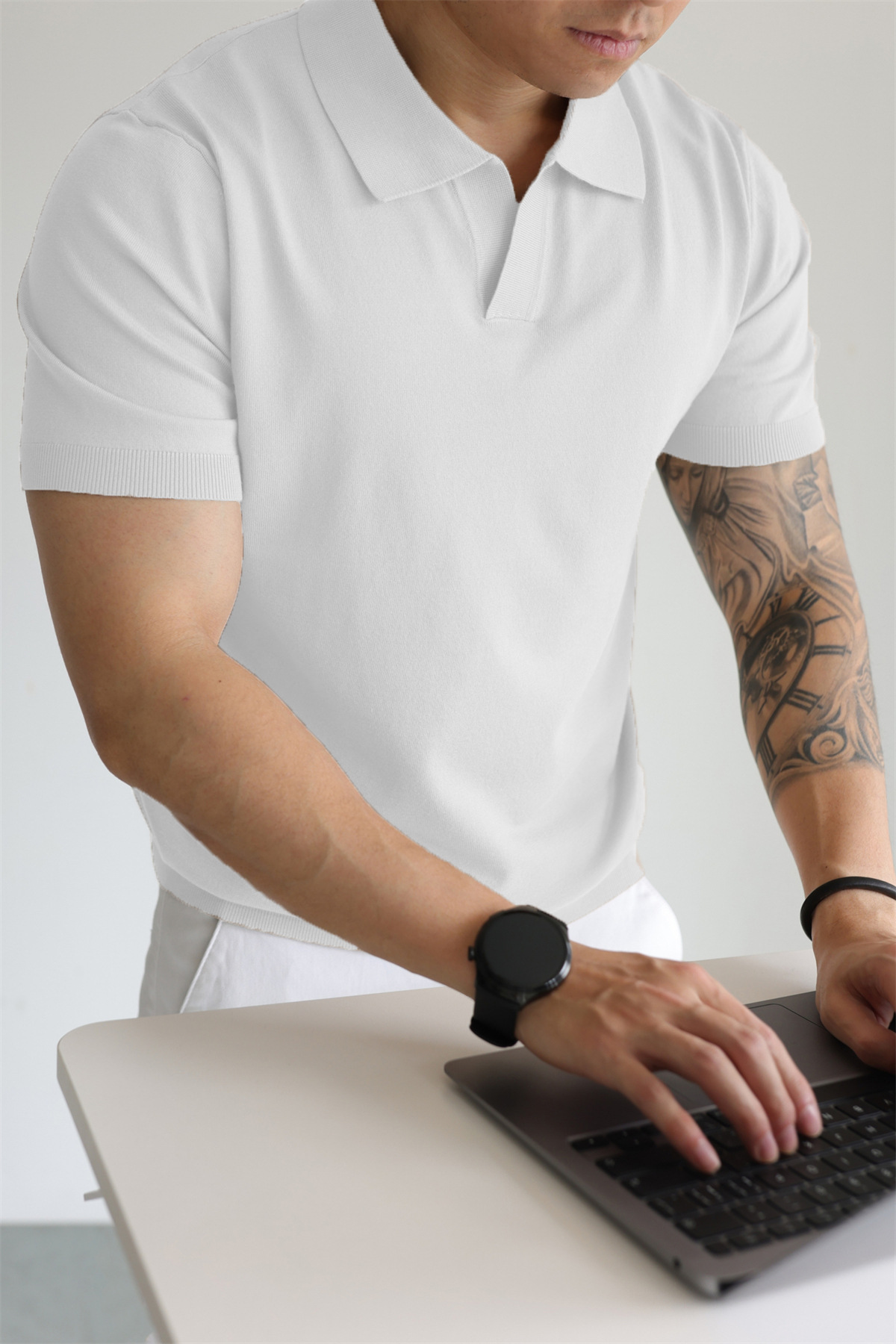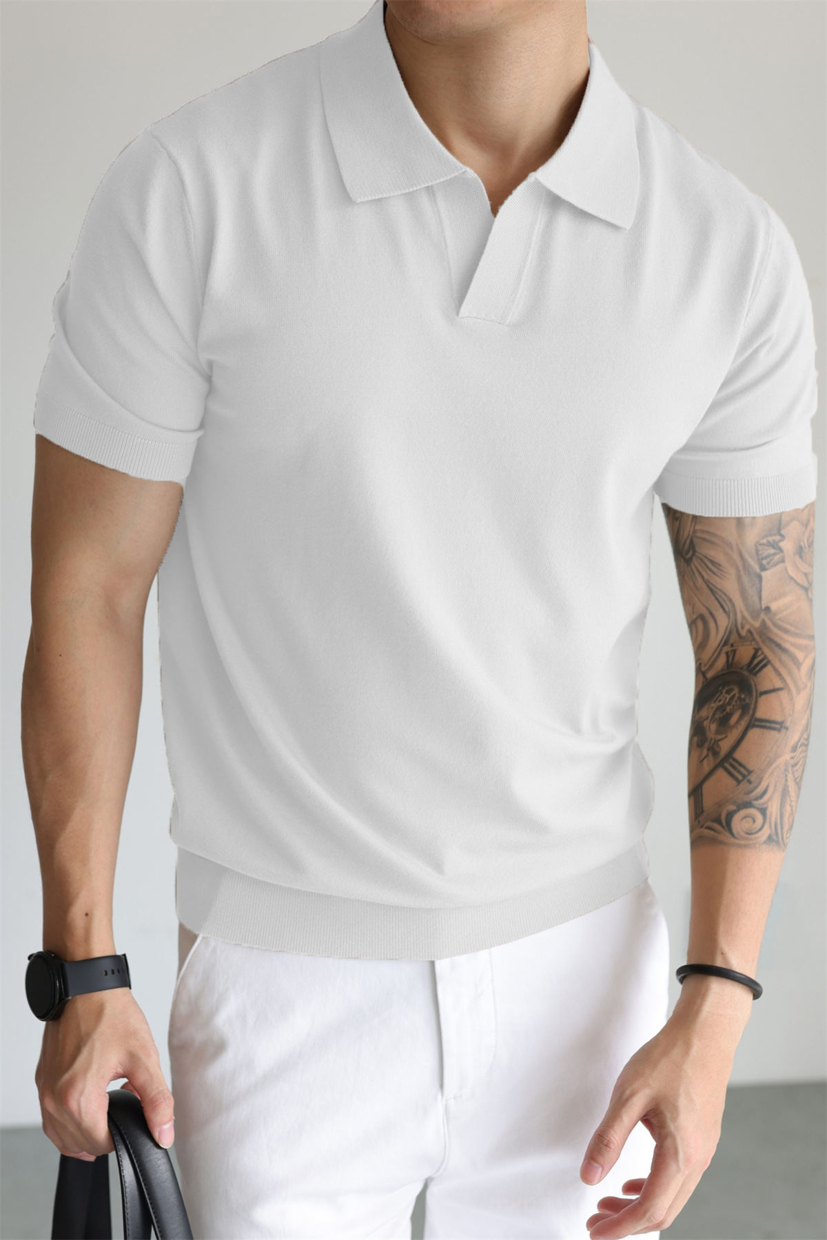 여름 아이스 실크 화이트 폴로 셔츠 남성용 라이트 럭셔리 스웨터 비즈니스 하이 엔드 노 아이언 블랙 반팔 라펠 탑