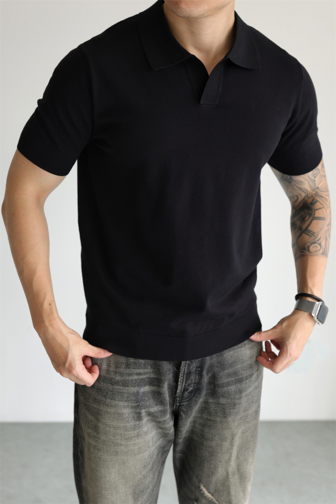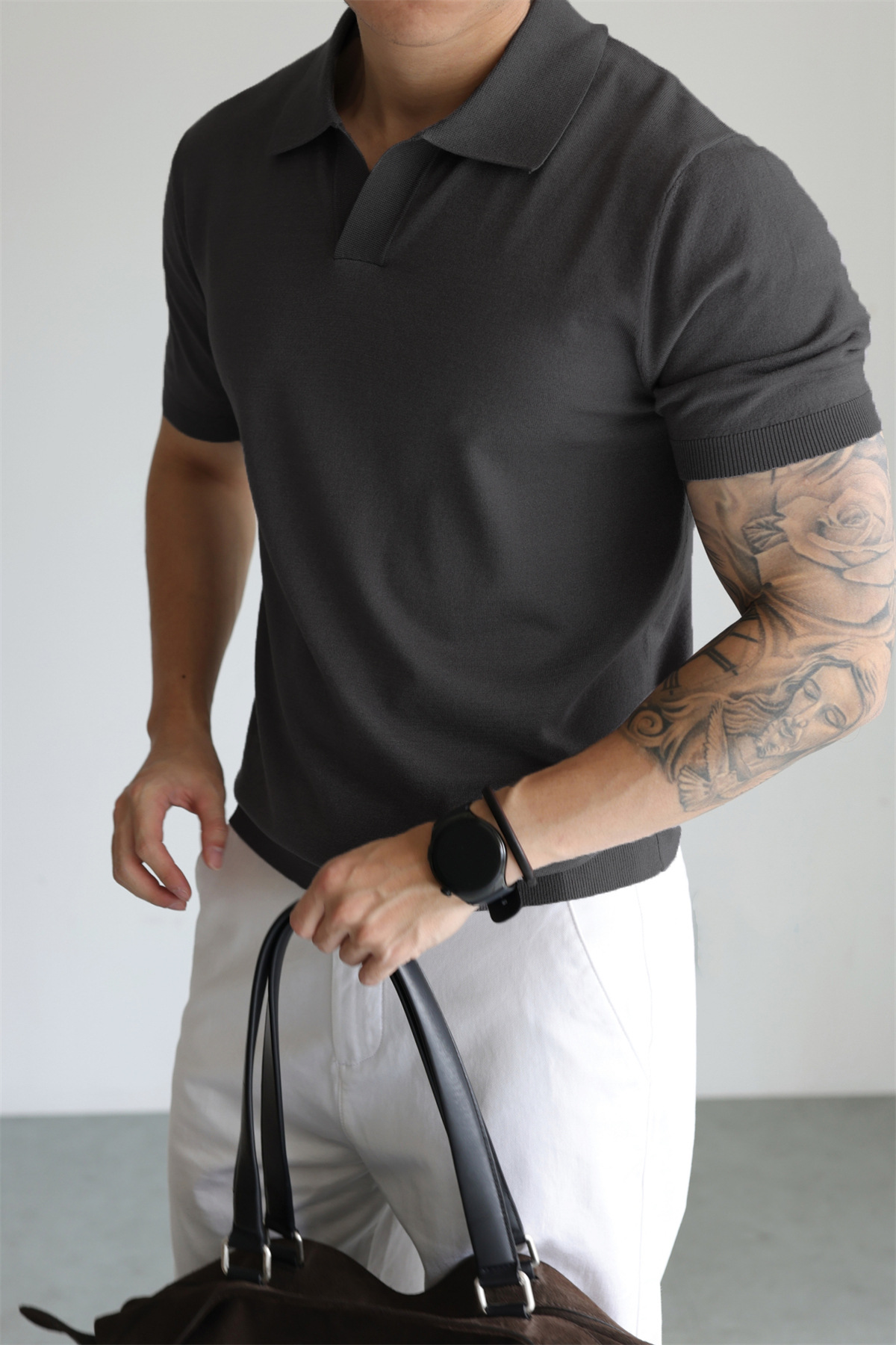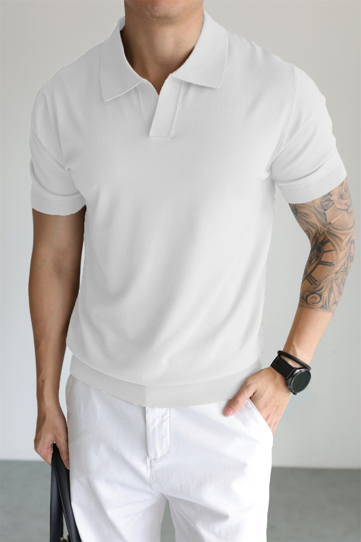 여름 아이스 실크 화이트 폴로 셔츠 남성용 라이트 럭셔리 스웨터 비즈니스 하이 엔드 노 아이언 블랙 반팔 라펠 탑스토어 가기