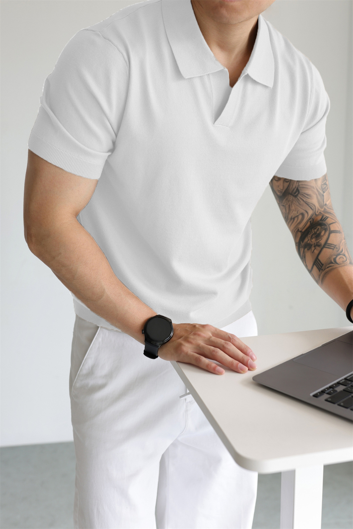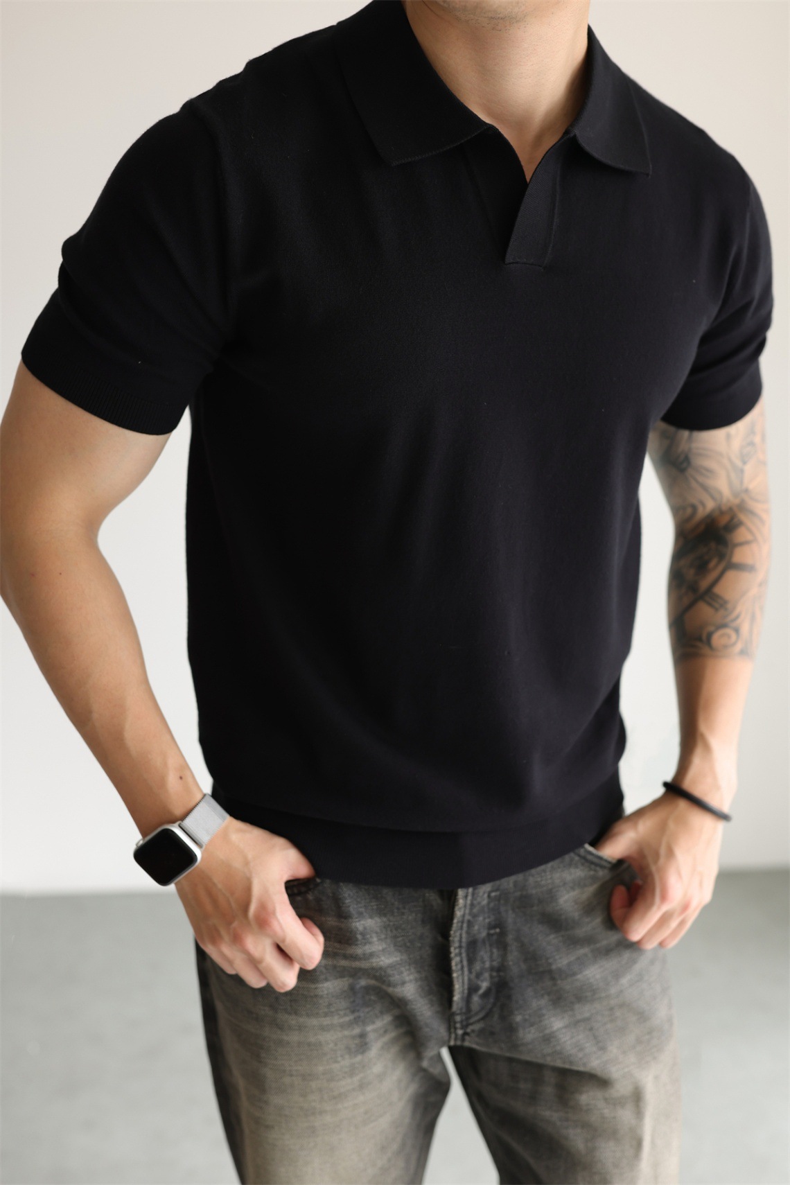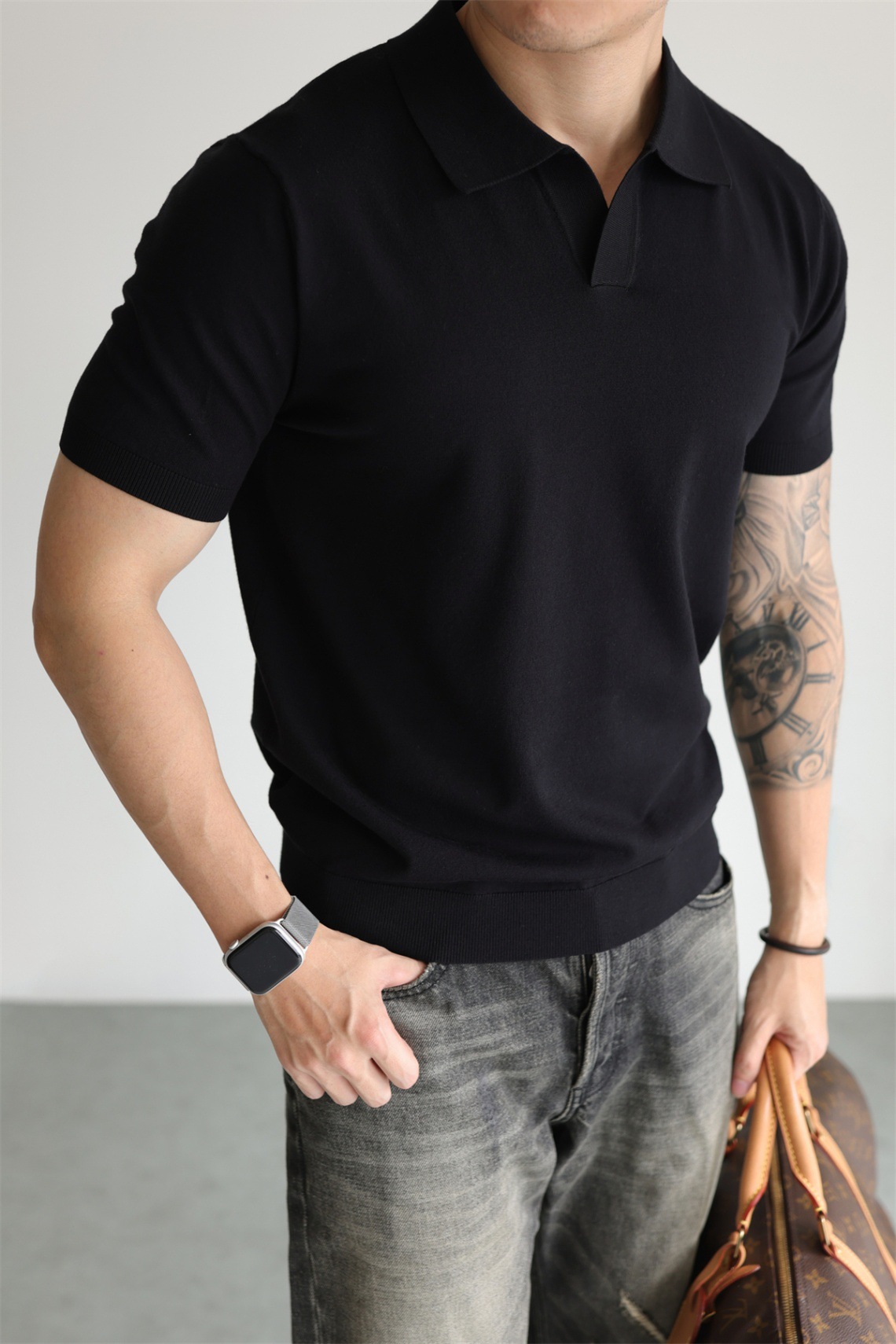 여름 아이스 실크 화이트 폴로 셔츠 남성용 라이트 럭셔리 스웨터 비즈니스 하이 엔드 노 아이언 블랙 반팔 라펠 탑스토어 가기