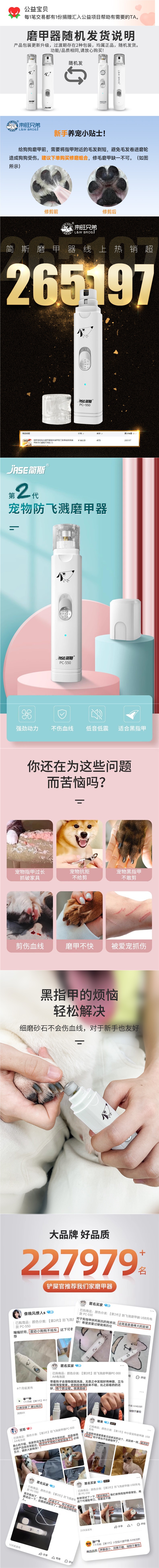 • [2세대] 중형견 및 대형견용 비말 방지 네일 폴리셔, 리튬 배터리 충전식 모델