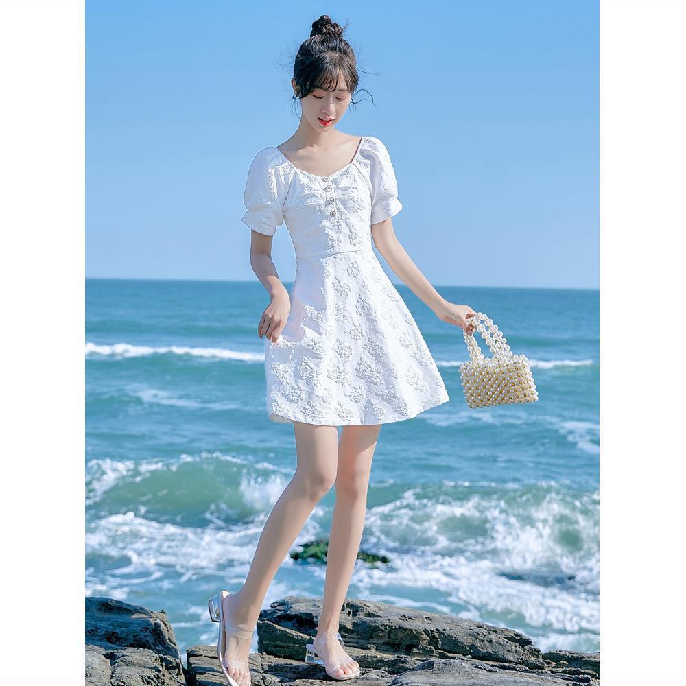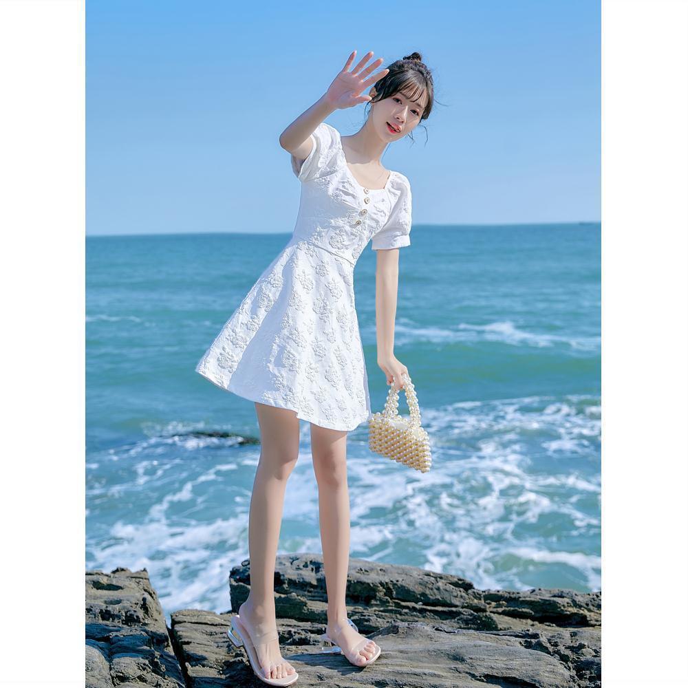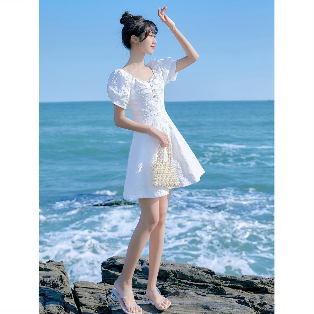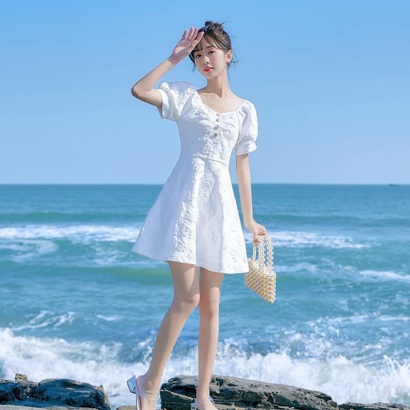 2025 년 여름 원피스 여성의 새로운 요정 달콤한 디자인 센스 니쉬 화이트 하이 허리 슬리밍 스커트스토어 가기