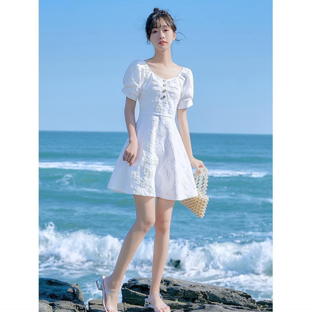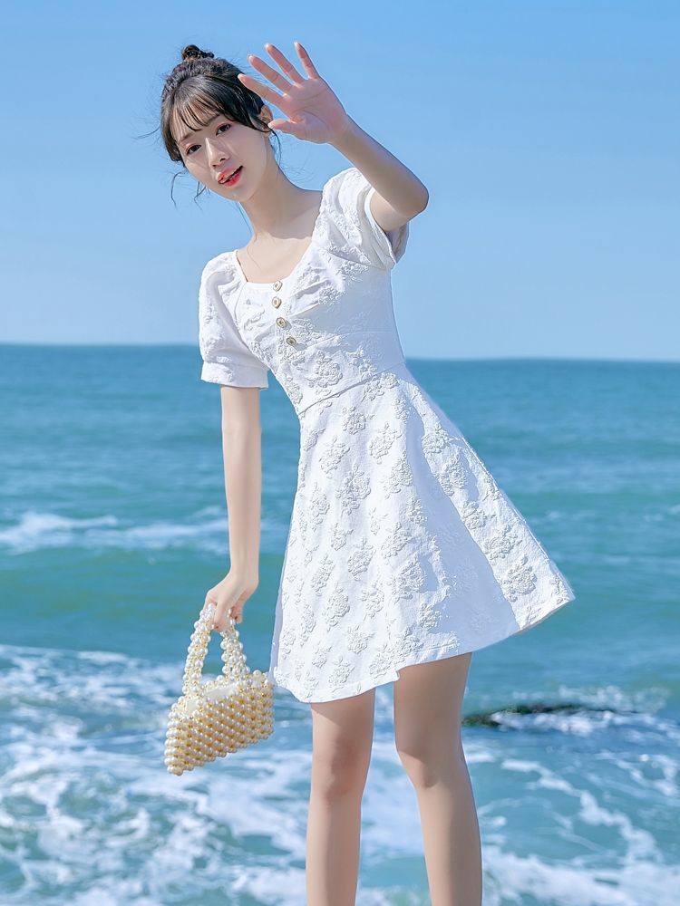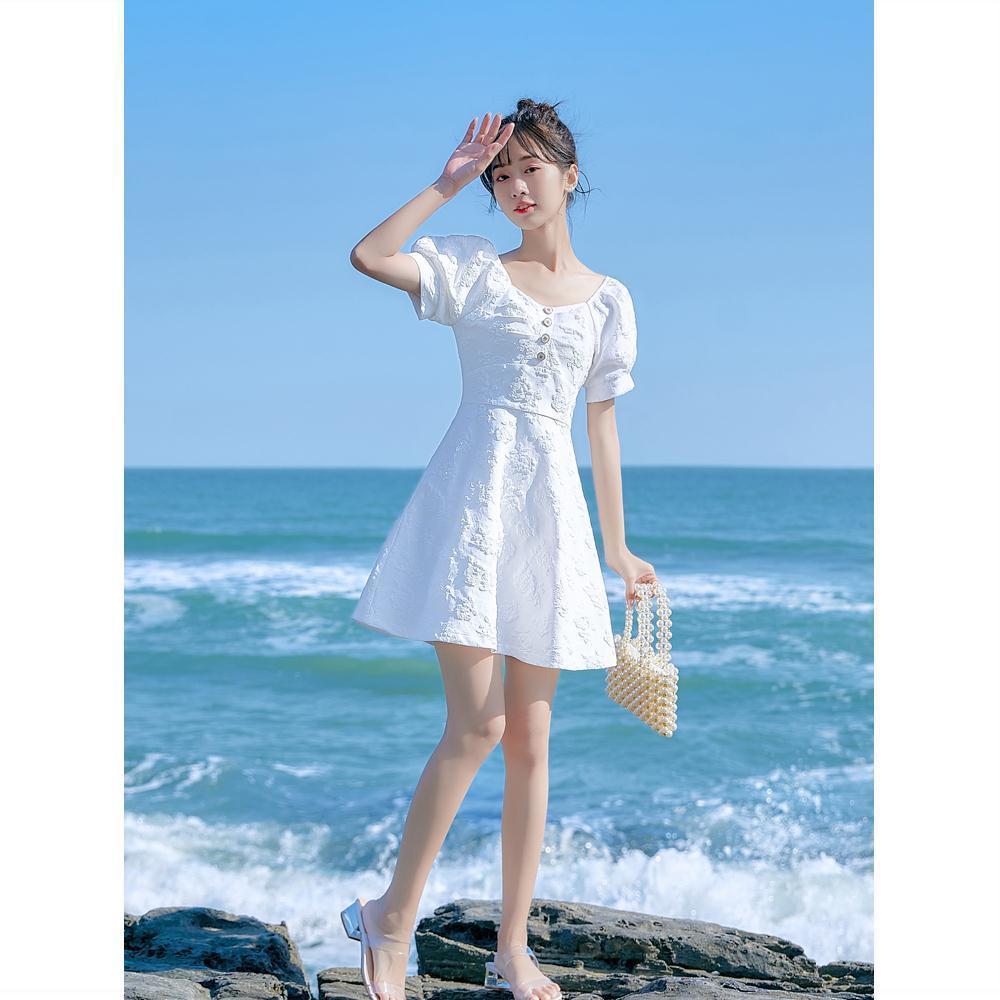 2025 년 여름 원피스 여성의 새로운 요정 달콤한 디자인 센스 니쉬 화이트 하이 허리 슬리밍 스커트스토어 가기