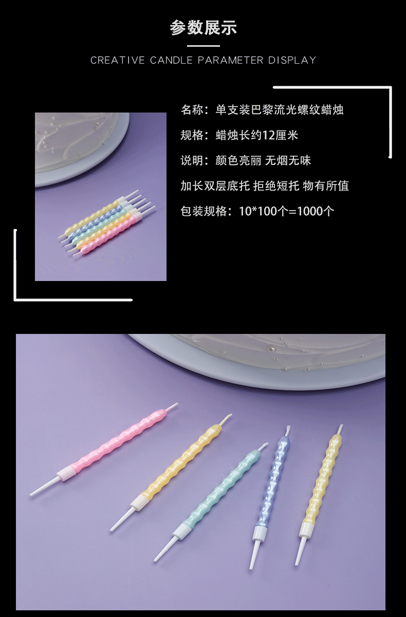 인터넷 Celebrous Single Parisian Streamer Long Rod Creative Spiral Pearlescent 대나무 생일 케이크 굽기 플러그인 캔들