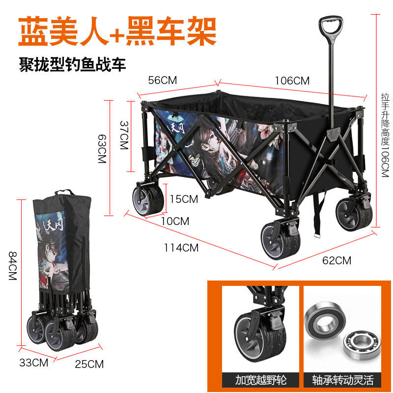 새로운 낚시 트롤링 트롤리, 야외 캠핑 접이식 트롤리, 낚시 블랙 핏 트롤리, 푸시형스토어 가기