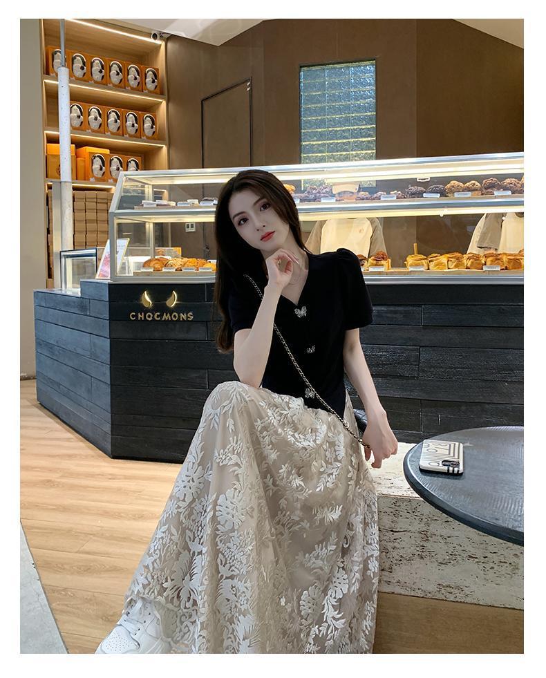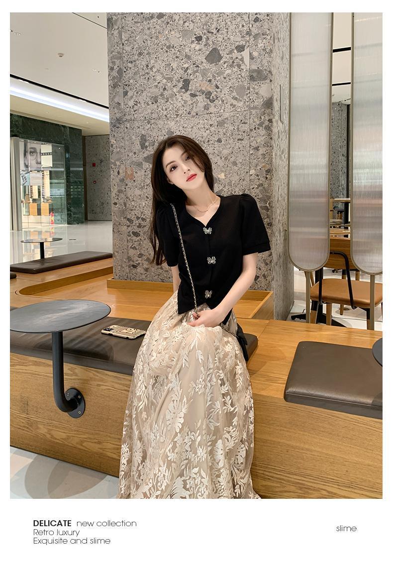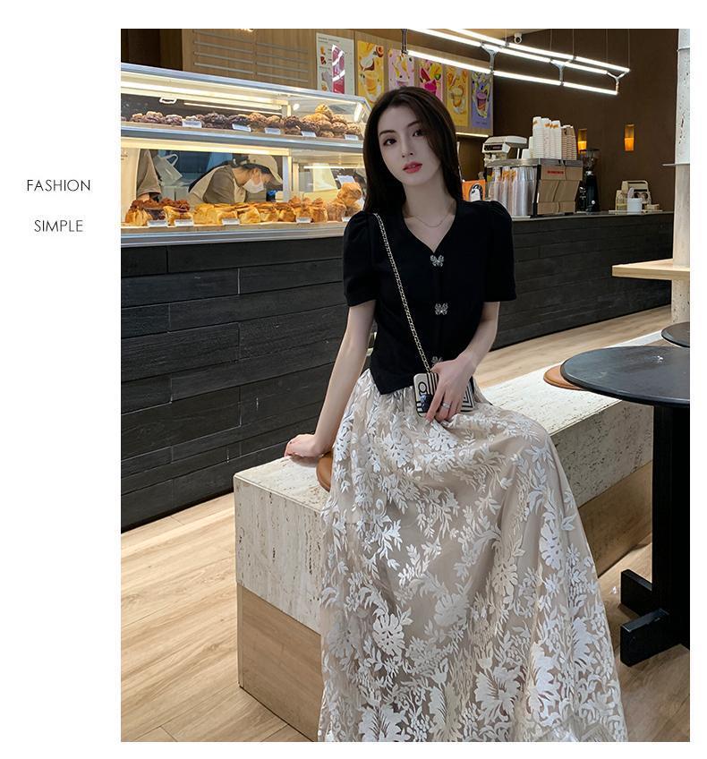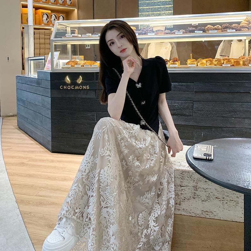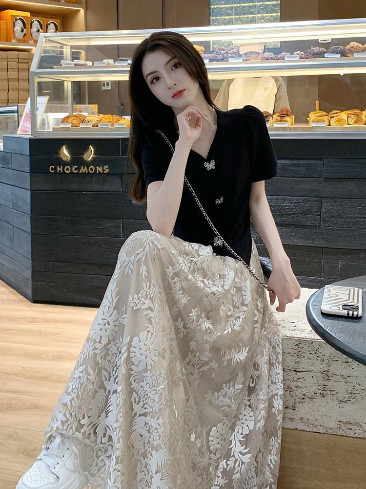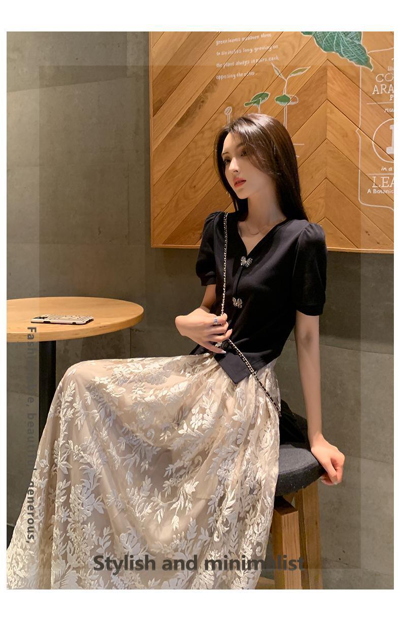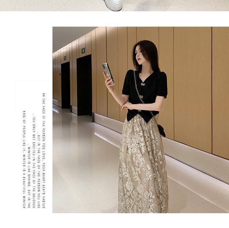 플러스 사이즈 통통한 프랑스 아카데미 스타일 세트 틈새 디자인 스커트 2 피스 세트 원피스 여성 여름 원피스스토어 가기