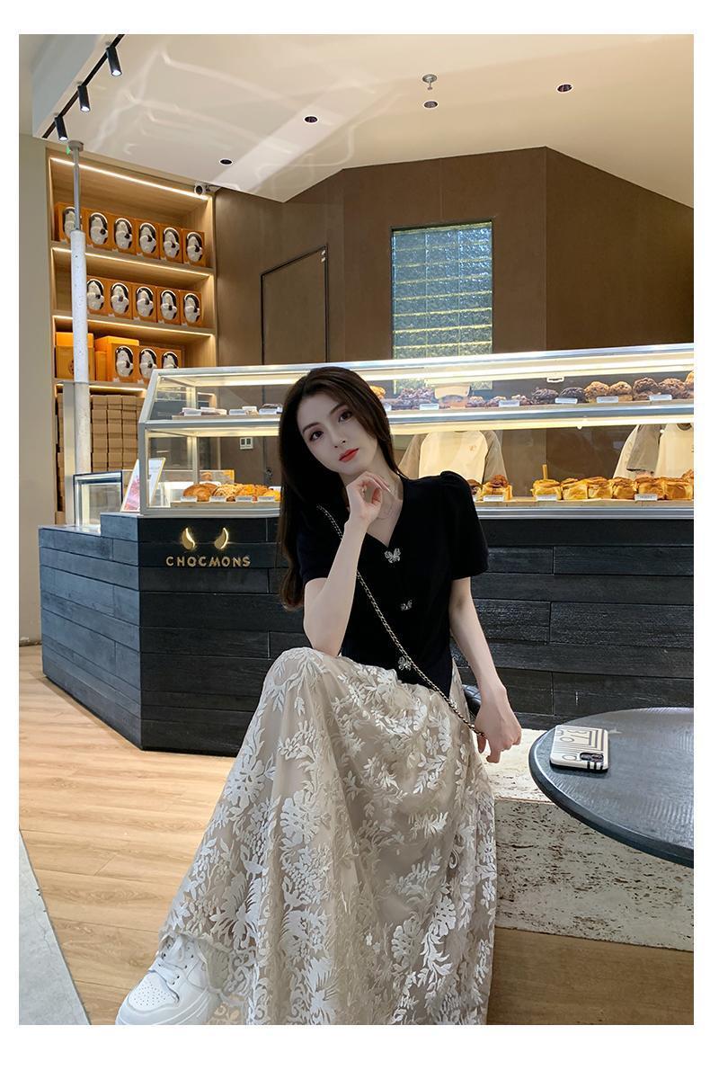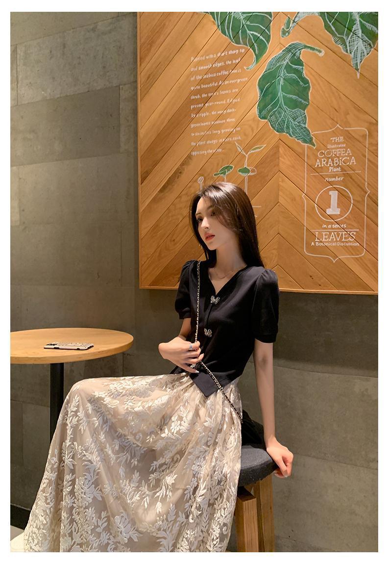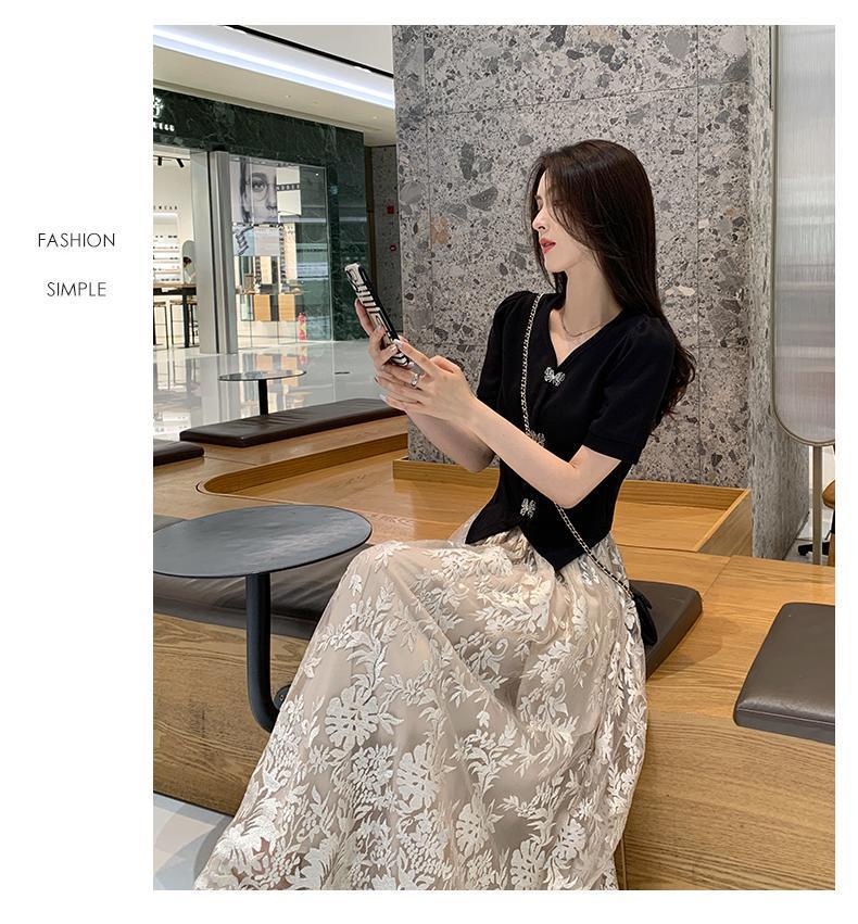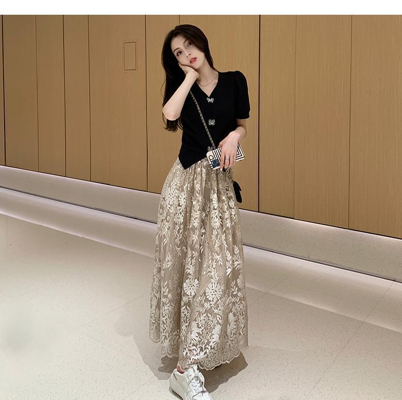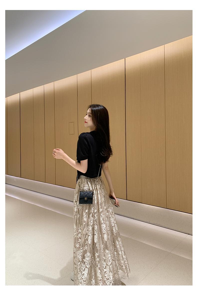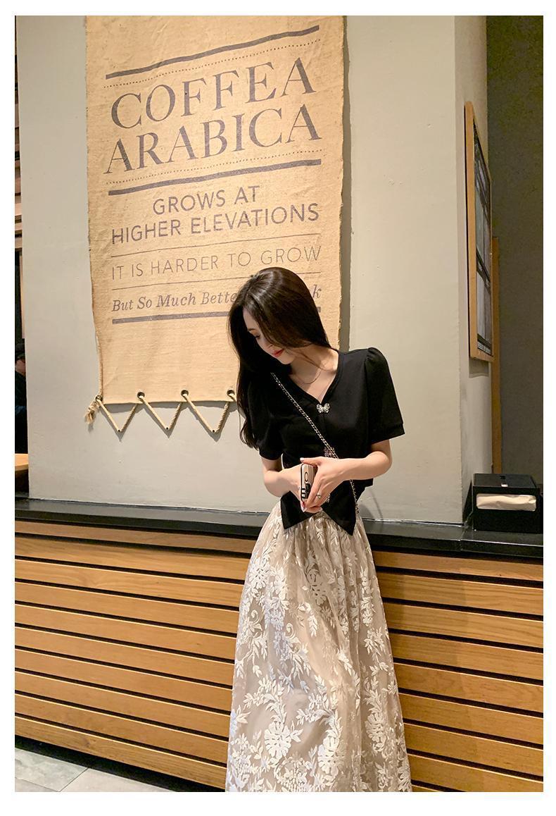 플러스 사이즈 통통한 프랑스 아카데미 스타일 세트 틈새 디자인 스커트 2 피스 세트 원피스 여성 여름 원피스스토어 가기