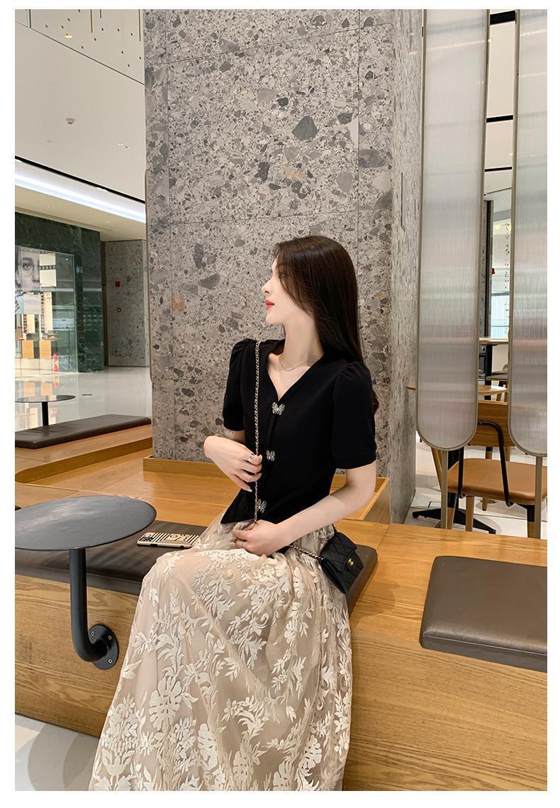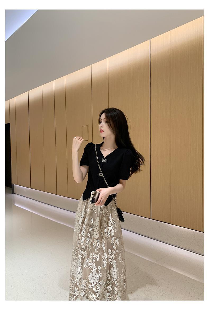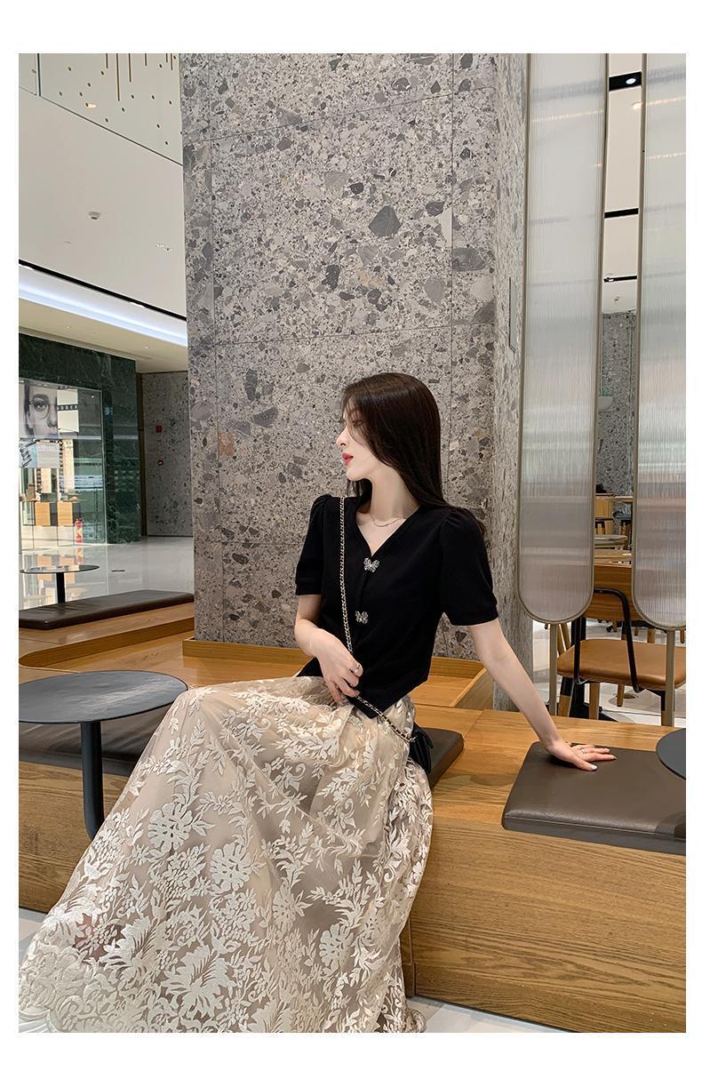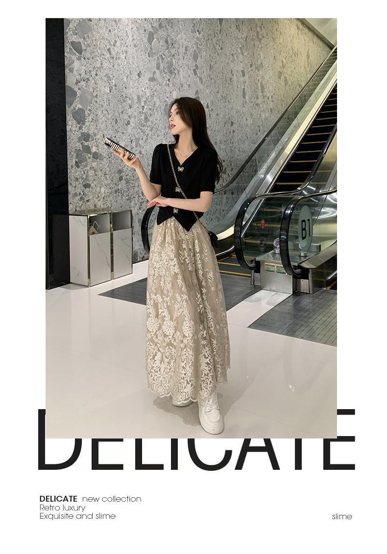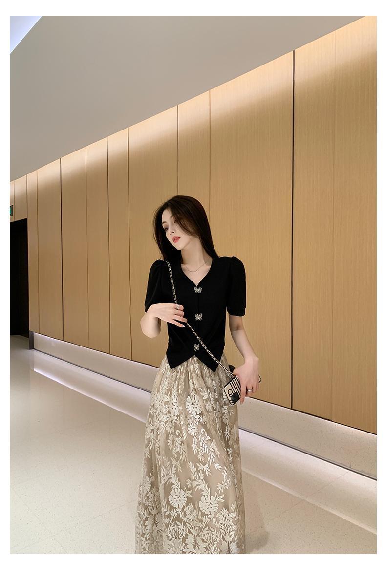 플러스 사이즈 통통한 프랑스 아카데미 스타일 세트 틈새 디자인 스커트 2 피스 세트 원피스 여성 여름 원피스스토어 가기