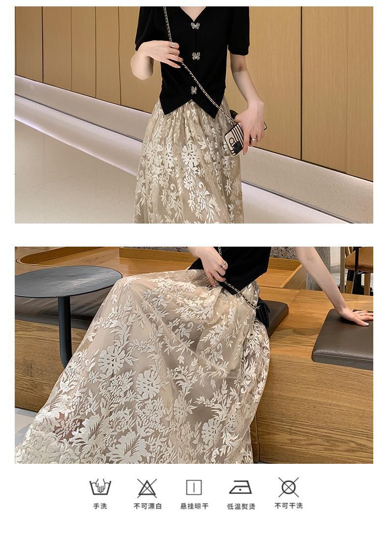플러스 사이즈 통통한 프랑스 아카데미 스타일 세트 틈새 디자인 스커트 2 피스 세트 원피스 여성 여름 원피스
