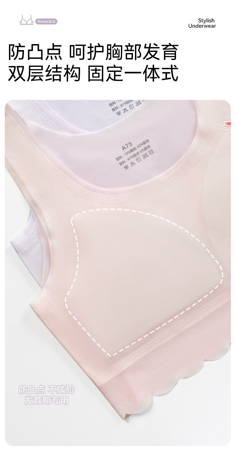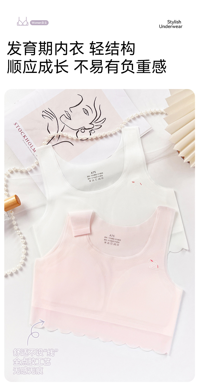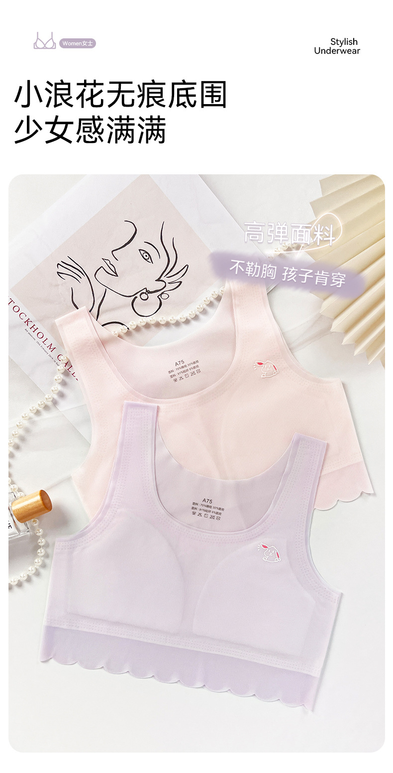10~15세 여아의 발달기 돌출방지 브라, 가볍고 흔적이 없는 조끼, 와이어가 없는 감압 속옷
