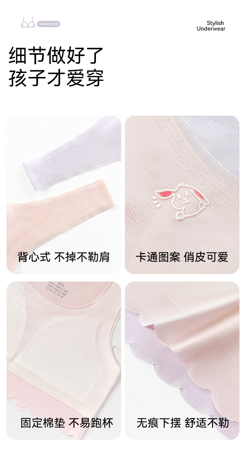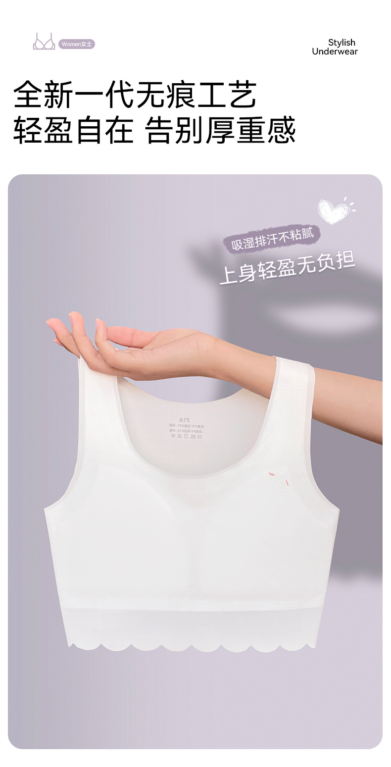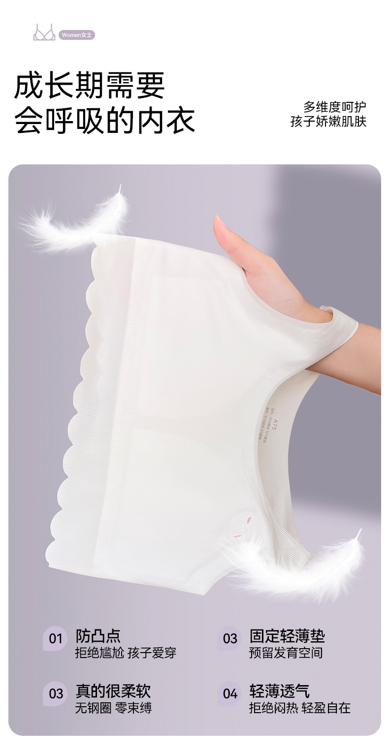10~15세 여아의 발달기 돌출방지 브라, 가볍고 흔적이 없는 조끼, 와이어가 없는 감압 속옷