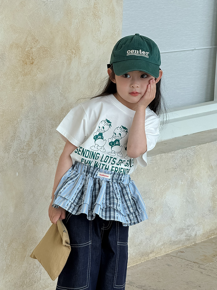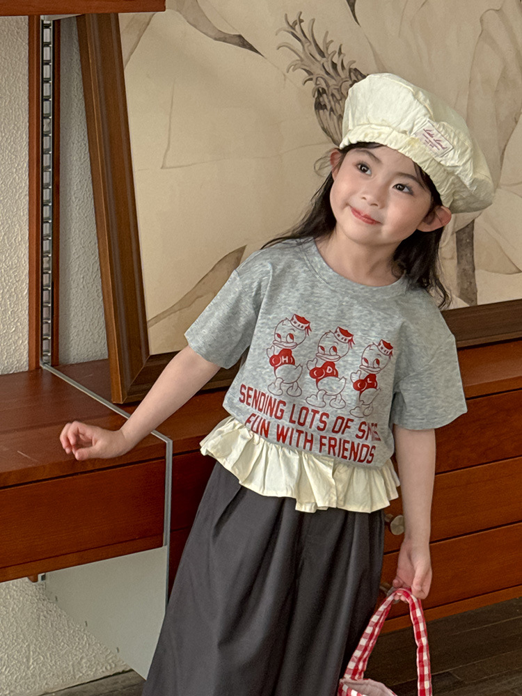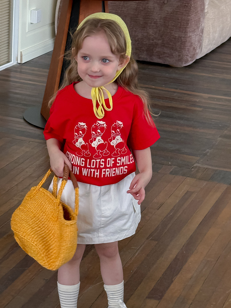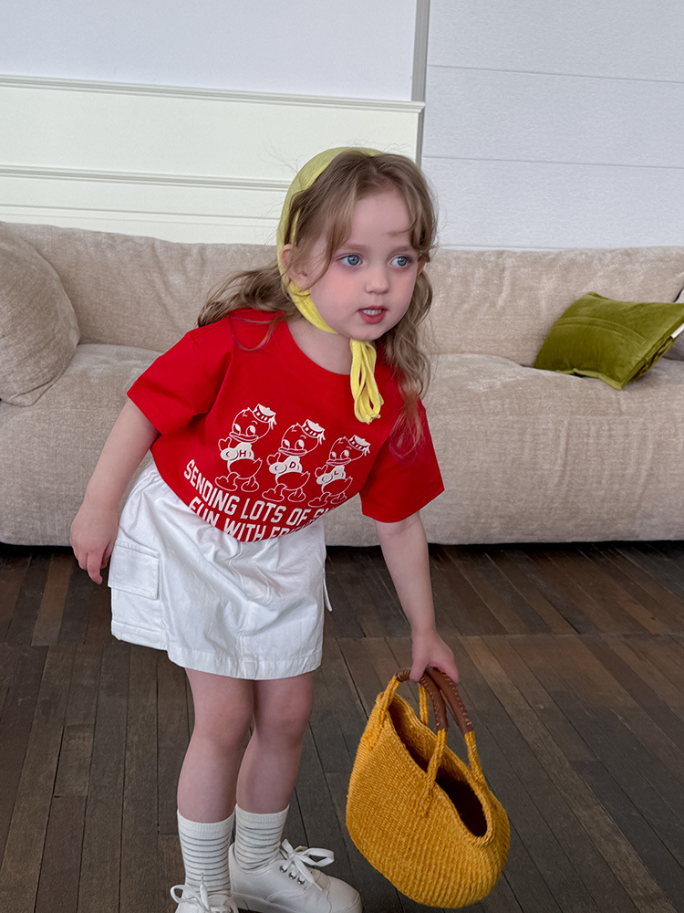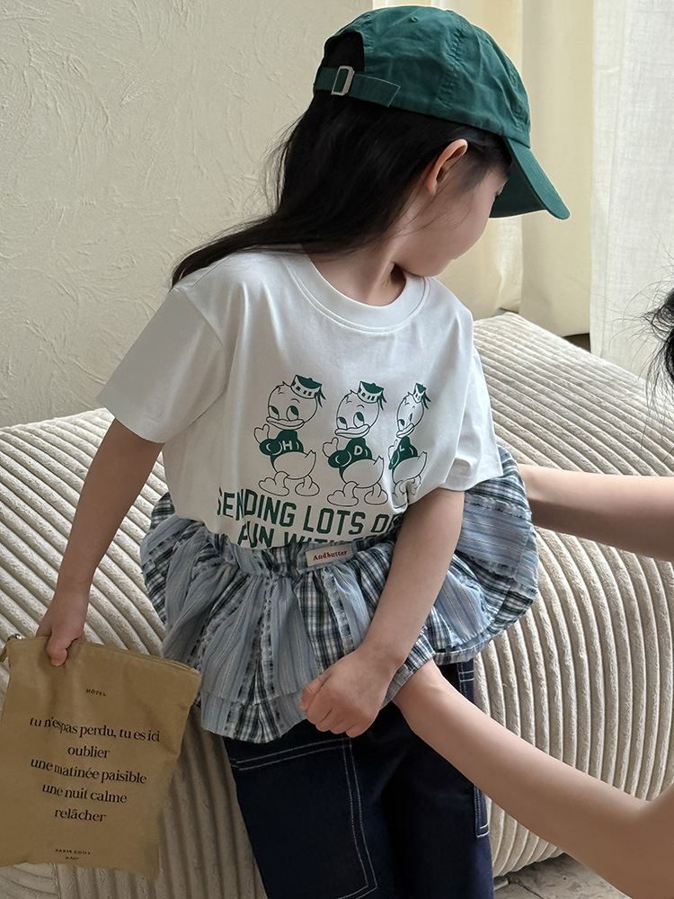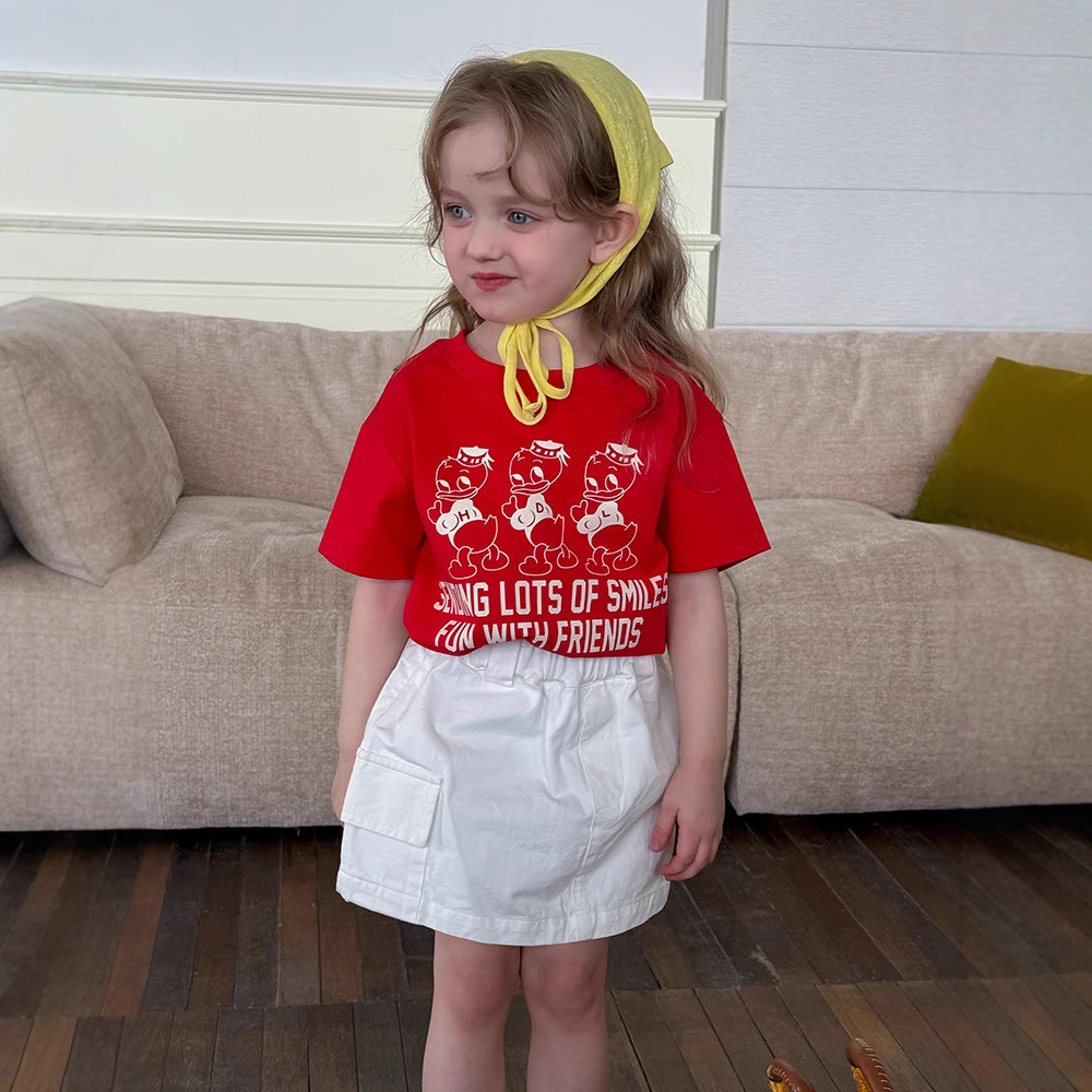 DD 같은 스타일 오리 티셔츠 2025 여름 새로운 일본 아동복 만화 소년 소녀를위한 귀여운 반팔 크루 넥 티셔츠