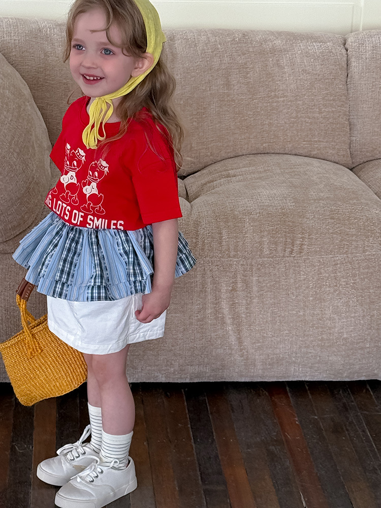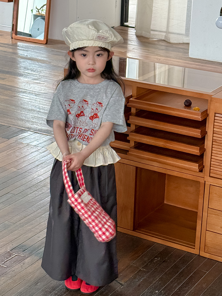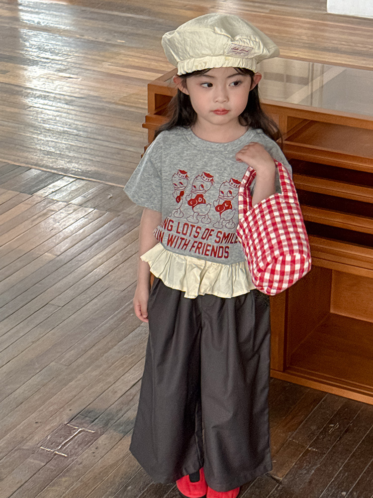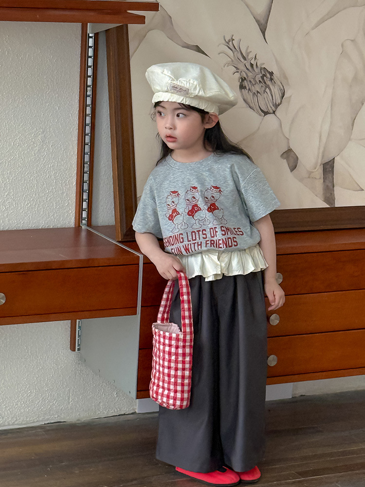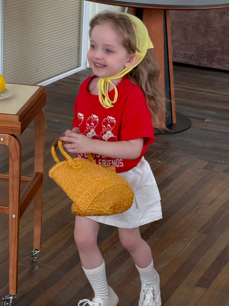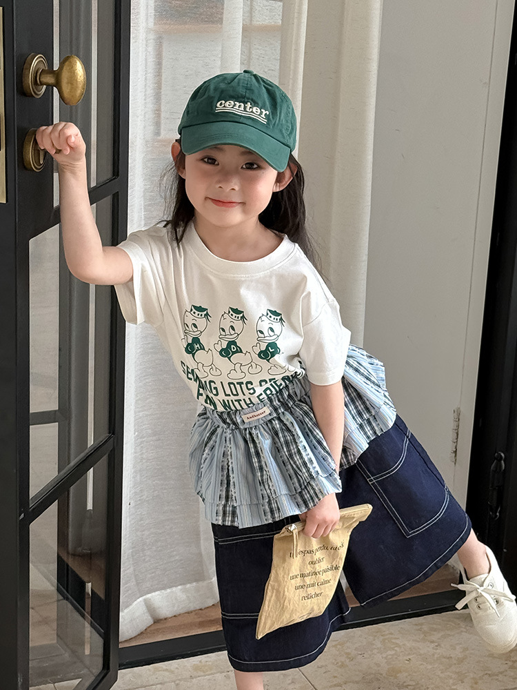 DD 같은 스타일 오리 티셔츠 2025 여름 새로운 일본 아동복 만화 소년 소녀를위한 귀여운 반팔 크루 넥 티셔츠