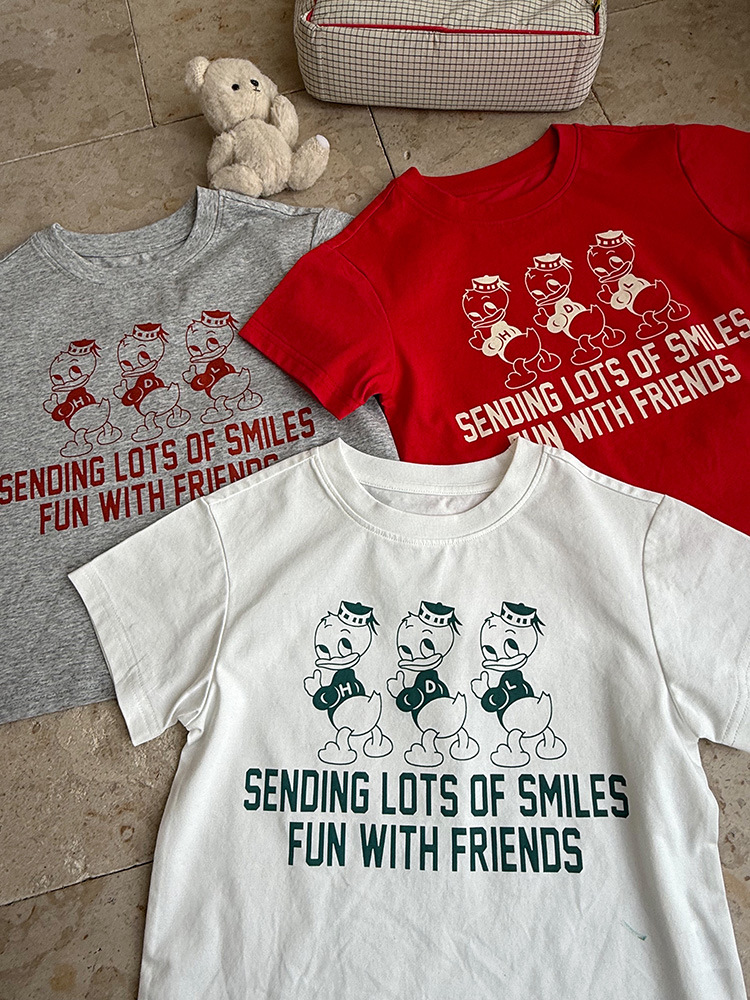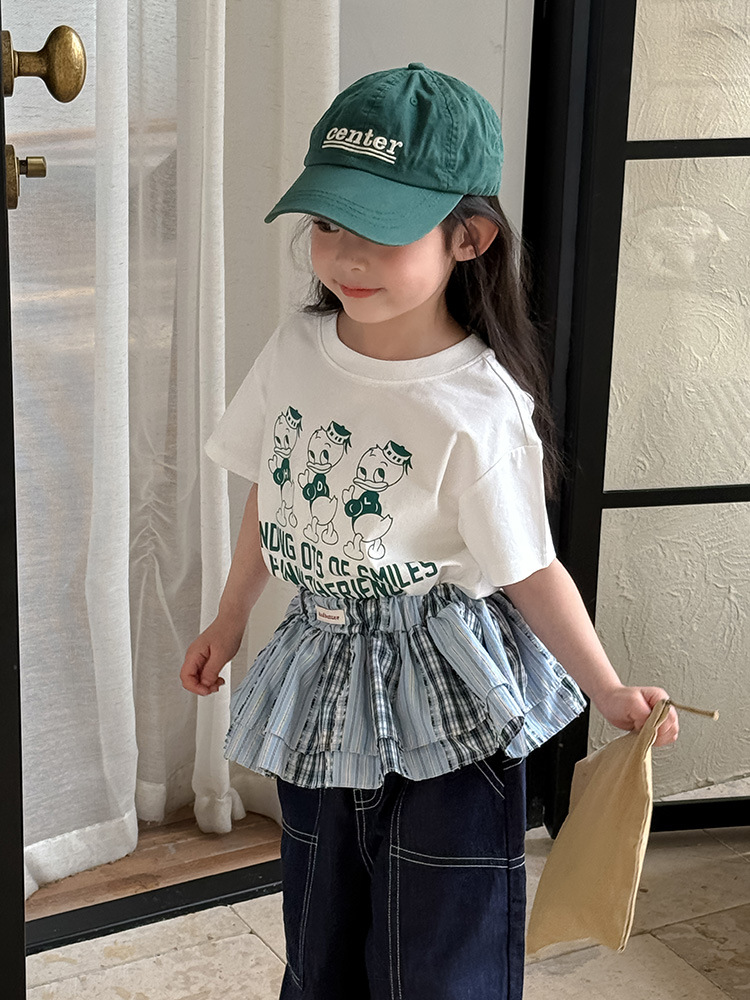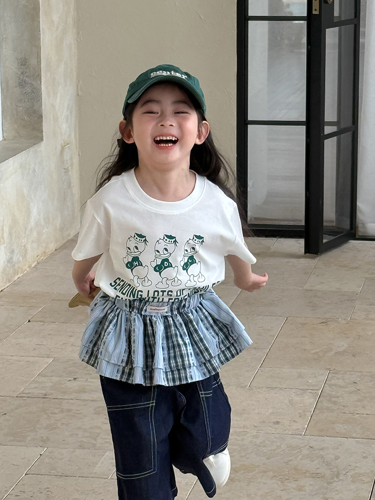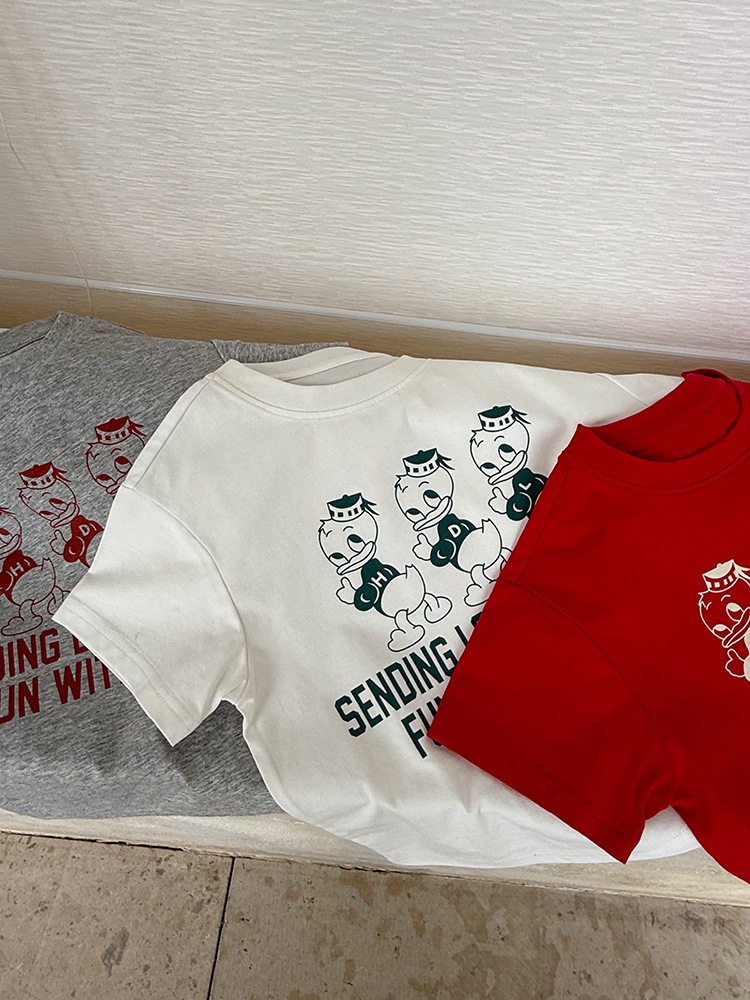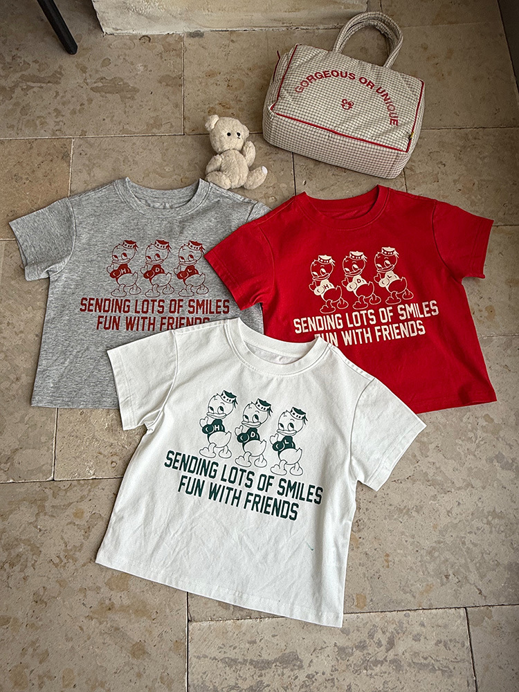 DD 같은 스타일 오리 티셔츠 2025 여름 새로운 일본 아동복 만화 소년 소녀를위한 귀여운 반팔 크루 넥 티셔츠스토어 가기