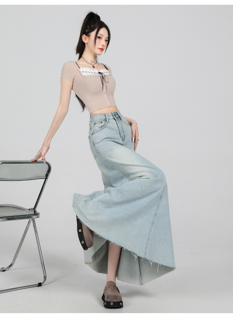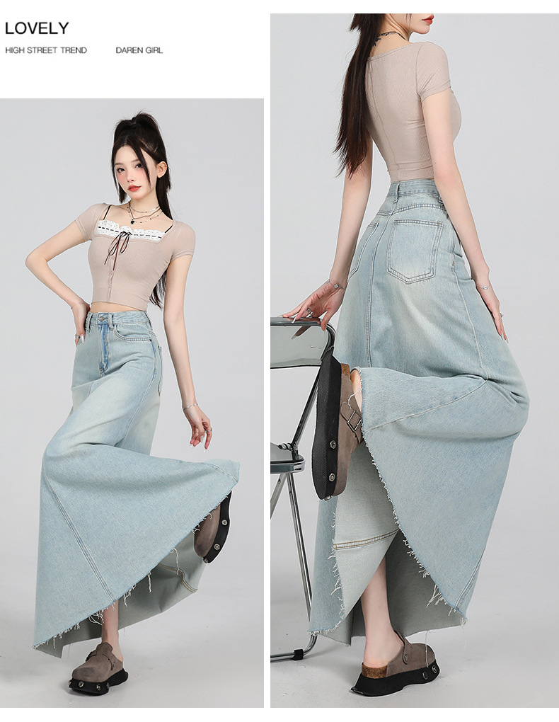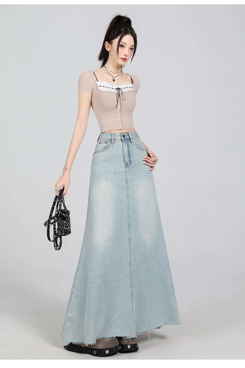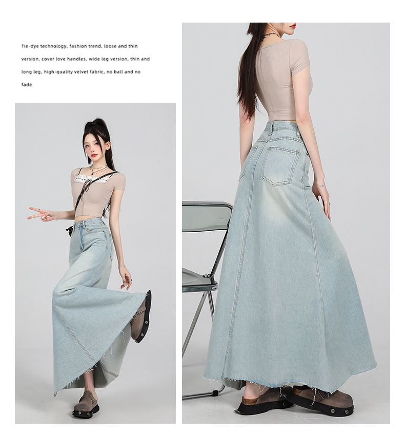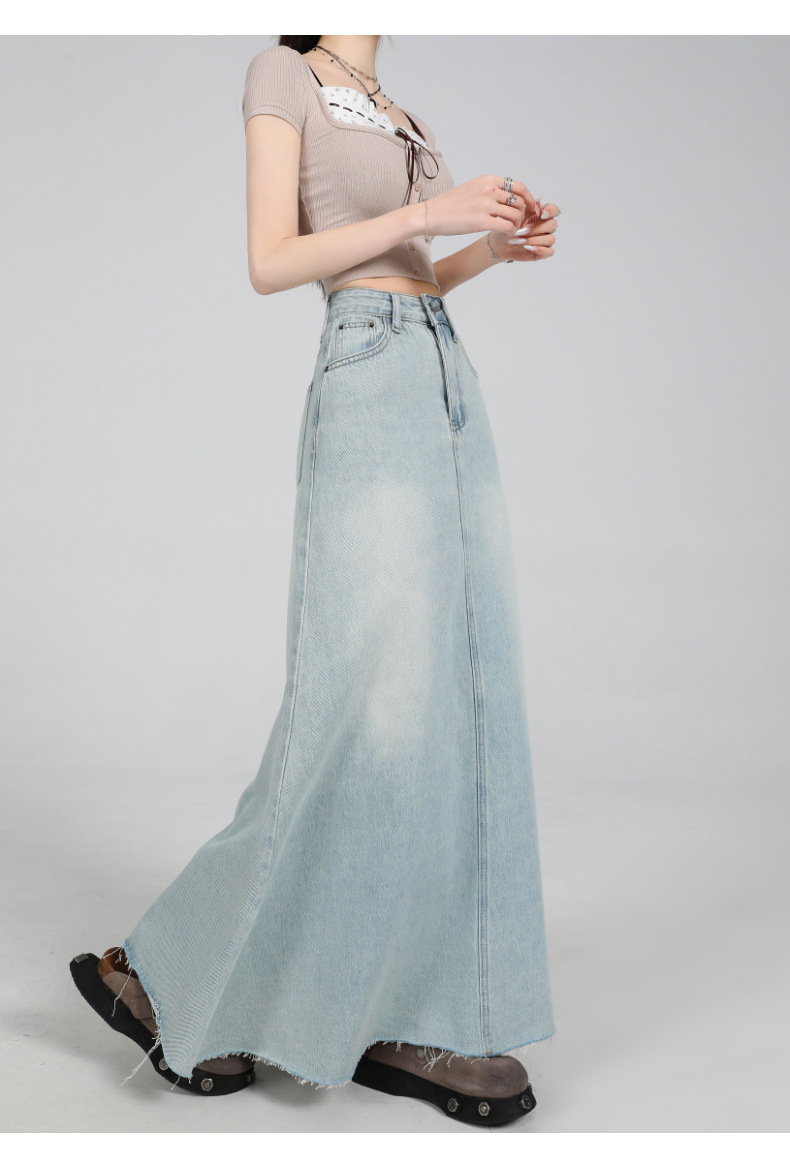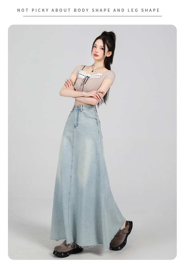 2318 텐셀 데님 스커트 여자 하이 웨이스트 2025 여름 얇은 A 라인 배 모양의 슬림 모양의 미드 길이 스커트