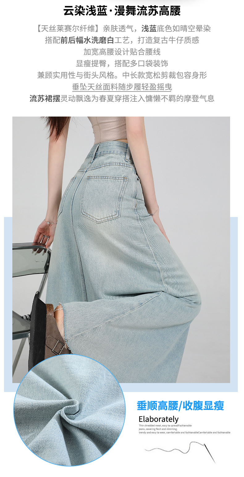 2318 텐셀 데님 스커트 여자 하이 웨이스트 2025 여름 얇은 A 라인 배 모양의 슬림 모양의 미드 길이 스커트스토어 가기