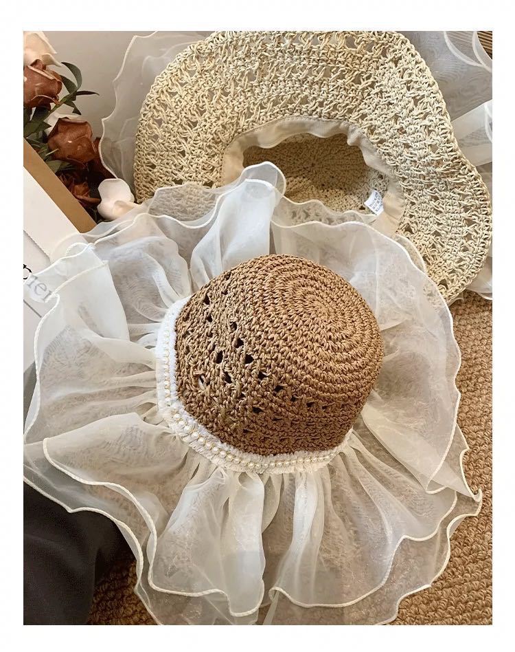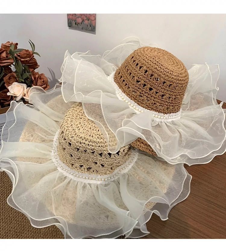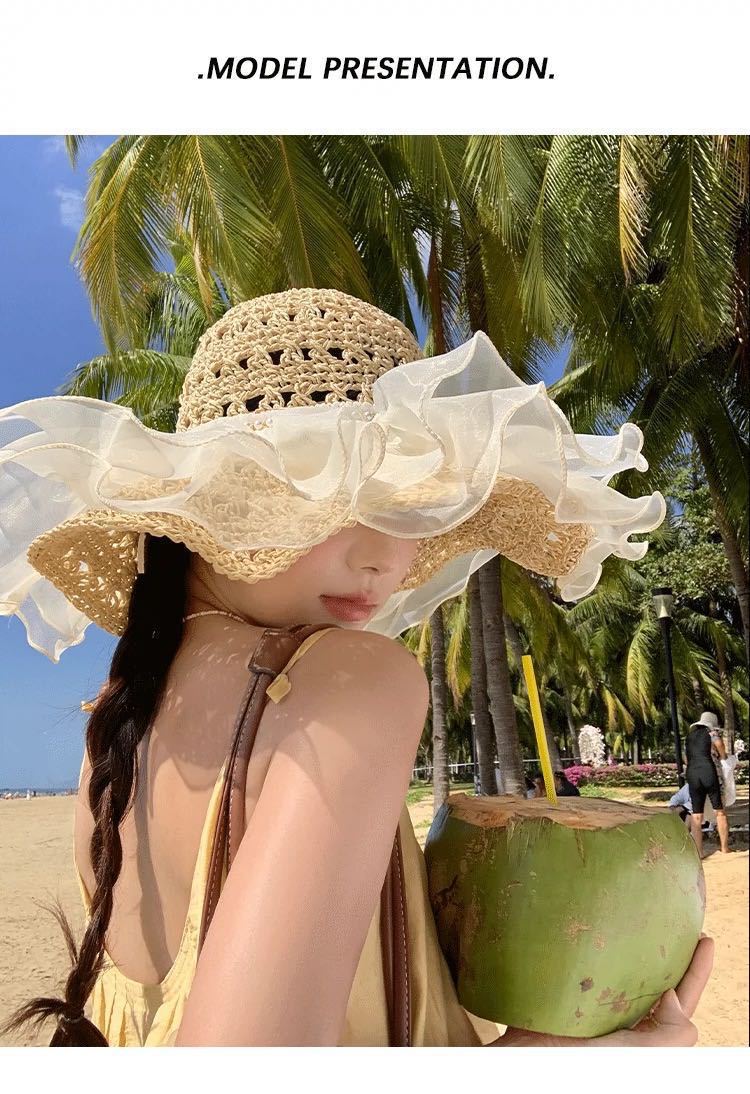 일본식 Sweet Women's Hollow-out Big Eave 여름 태양-여행 휴가 해변 햇살 모자스토어 가기